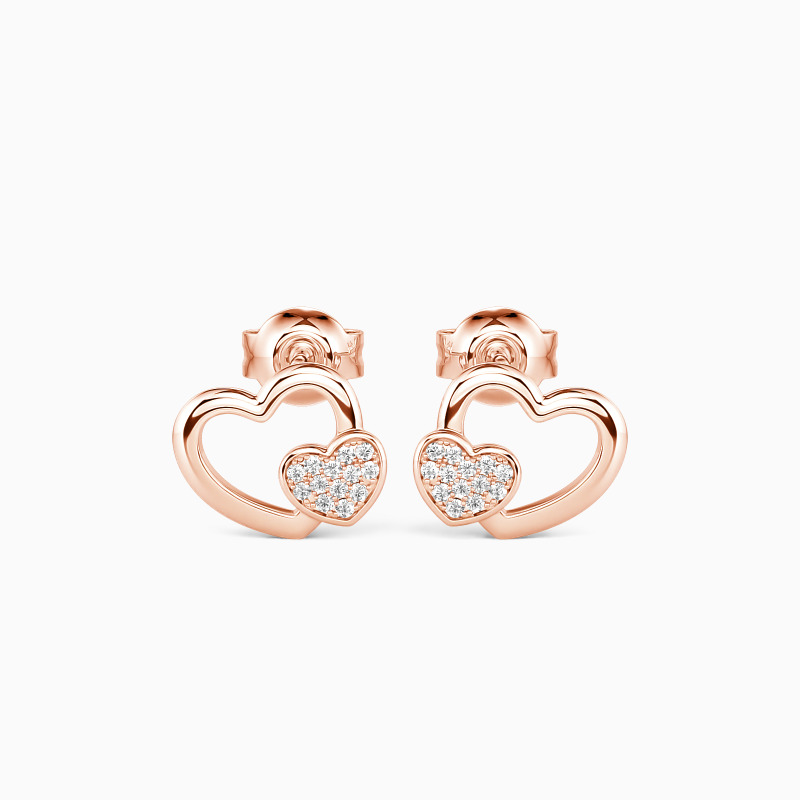 Do you have a heart full of love? Show it to the world with this pair of double heart studs earrings. A shiny metal heart encompasses a smaller forever heart. Boasting a cluster of petite stones in each heart shape. Complete with friction backs, you add the color. Heart in heart, as charming as you are.