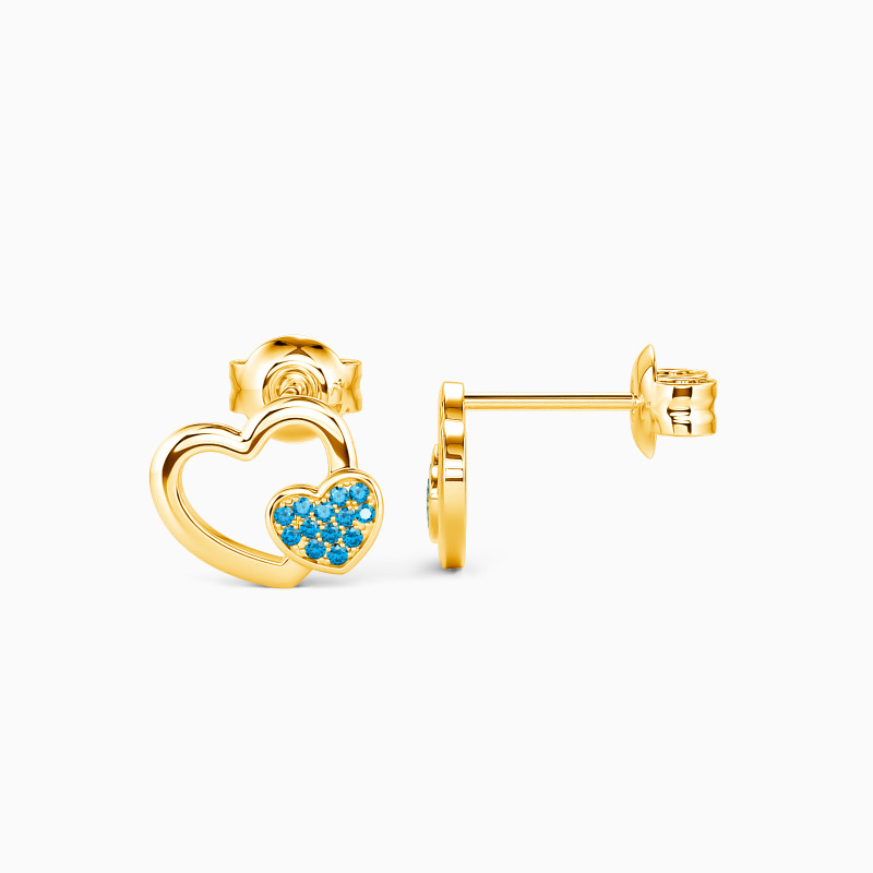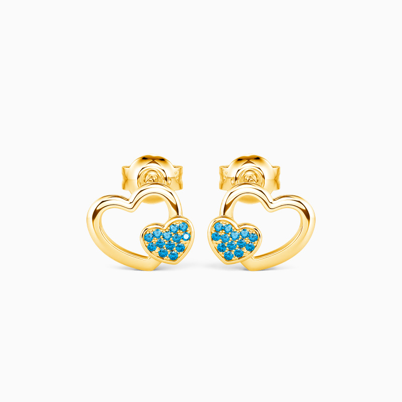 Do you have a heart full of love? Show it to the world with this pair of double heart studs earrings. A shiny metal heart encompasses a smaller forever heart. Boasting a cluster of petite stones in each heart shape. Complete with friction backs, you add the color. Heart in heart, as charming as you are.