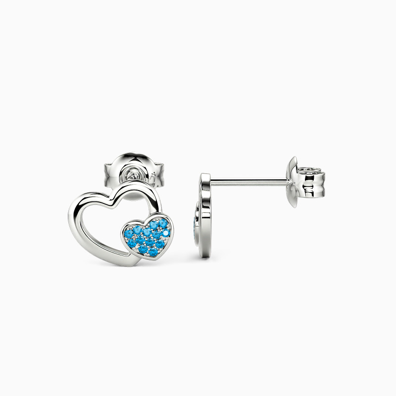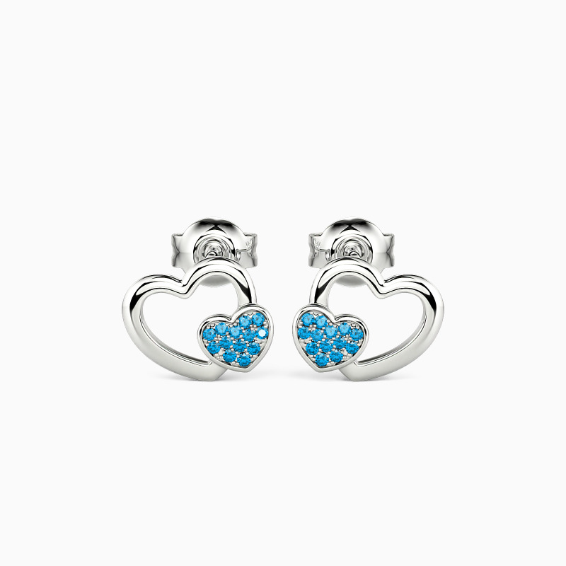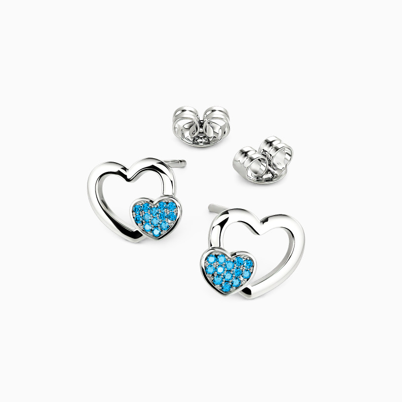 Do you have a heart full of love? Show it to the world with this pair of double heart studs earrings. A shiny metal heart encompasses a smaller forever heart. Boasting a cluster of petite stones in each heart shape. Complete with friction backs, you add the color. Heart in heart, as charming as you are.