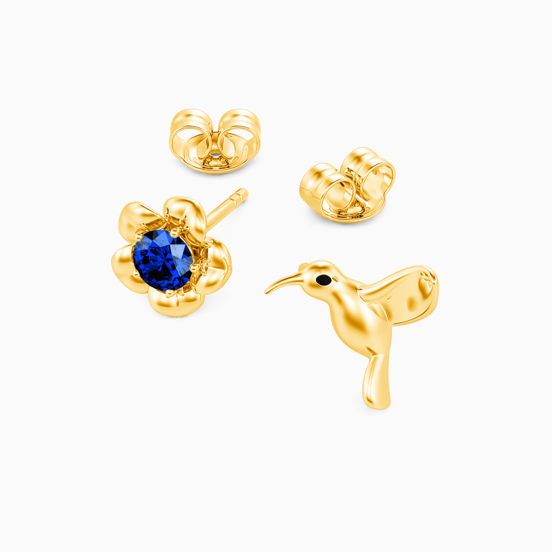 A pair of natural combinations form this interesting fashion accessory, a sweet reminder of the love that will last a lifetime. These stunning stud earrings feature one hummingbird and one flower on each side. Further enhancing the brilliance is the central accent of the flower and polished finish. Add this lovely piece to your jewelry box and you won't be disappointed.