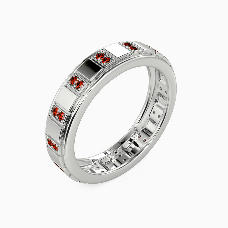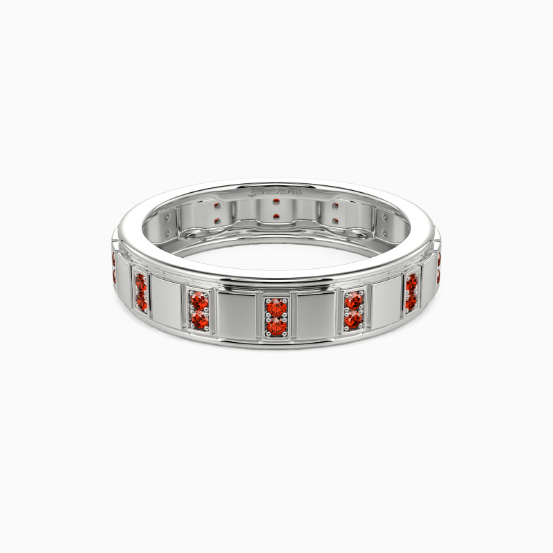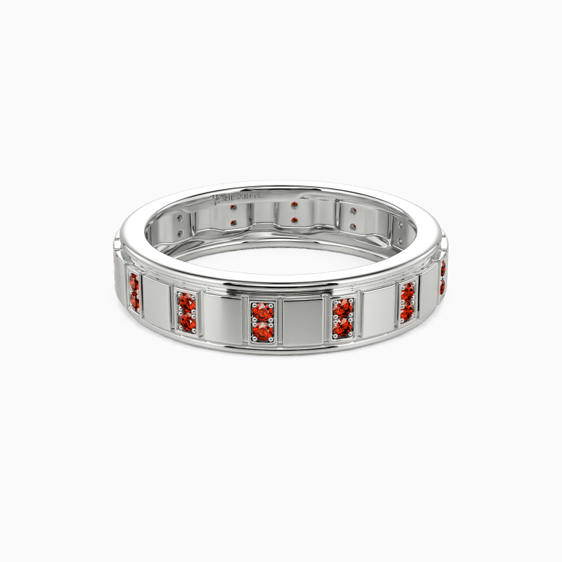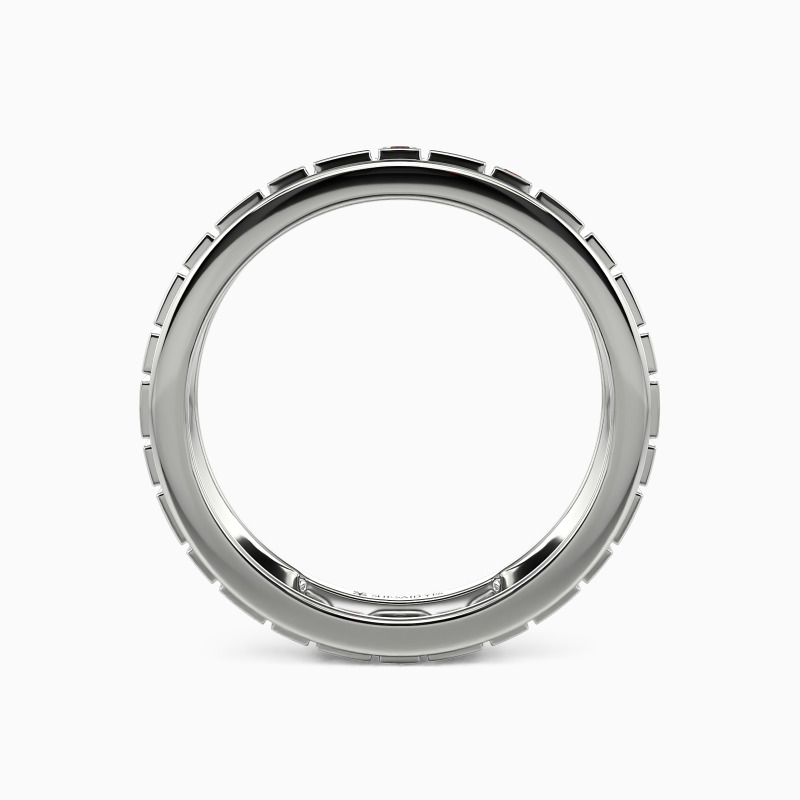 A modern band with satin touch, this wedding band is designed for witnessing your eternal love. Vertical grooves sculptured on the shank create this stunning jewelry piece. And two round-cut accents are pavéd in every vertical groove to show your scintillating glamour. You are my belief where I get strength, and I'm excited to wear this ring for you.