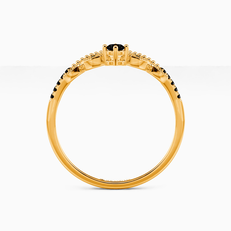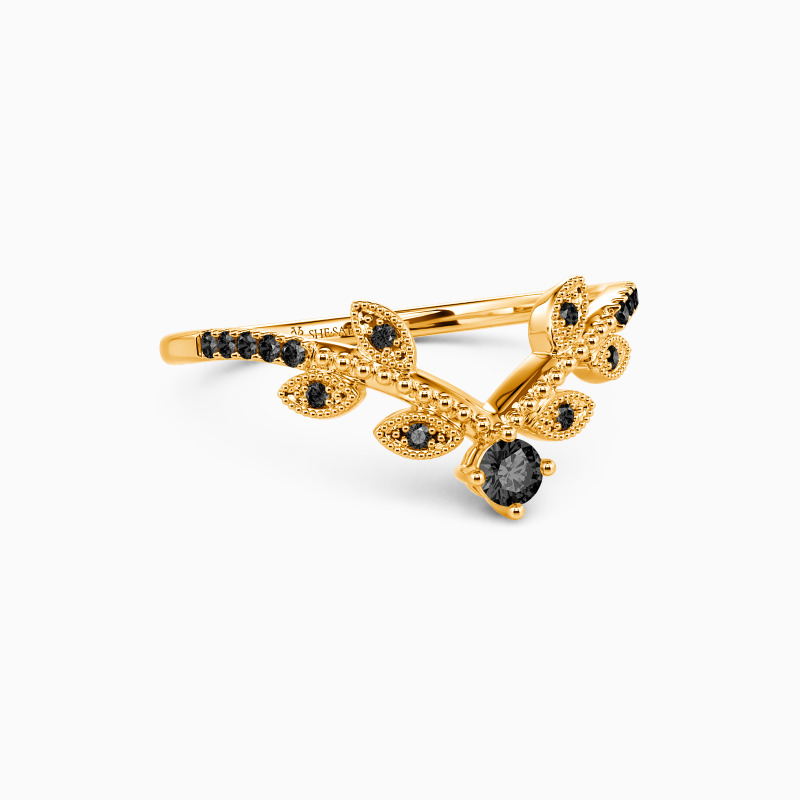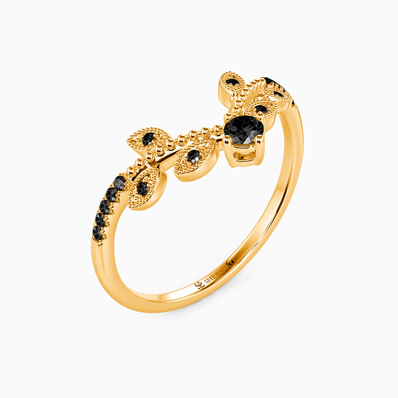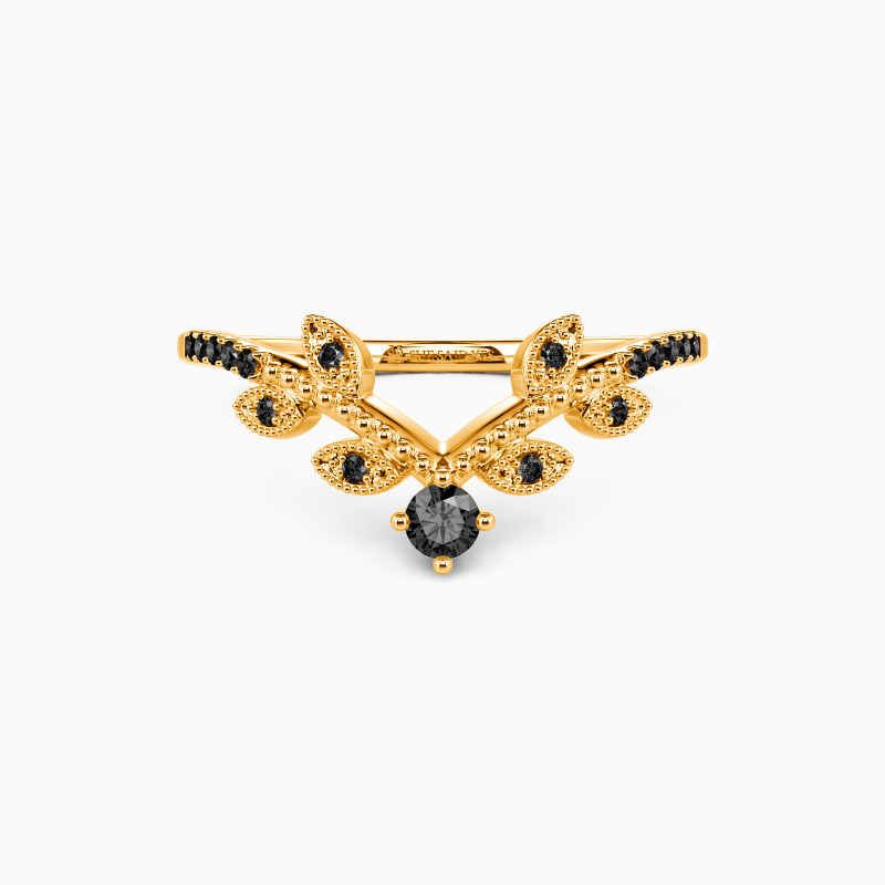 This modern band is a perfect way to add a touch of style and elegance to any ensemble. The leafy design runs along the shank reminding you to enjoy the natural joy in life. It sparkles with the twinkling round-cut stone and intricate milgrain borders. Stack or wear it solo, make a statement with this prominent masterpiece.