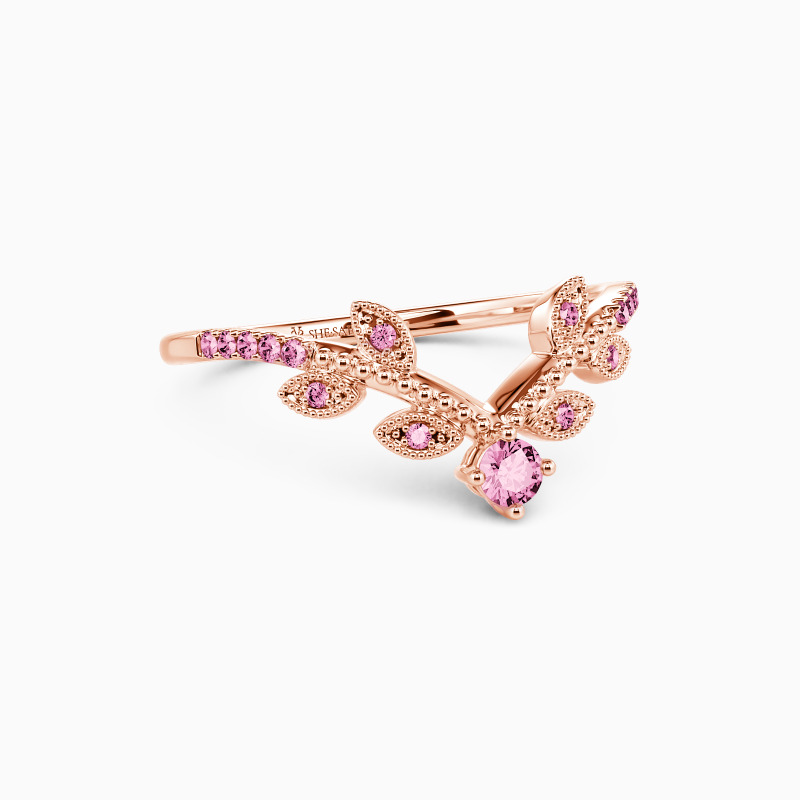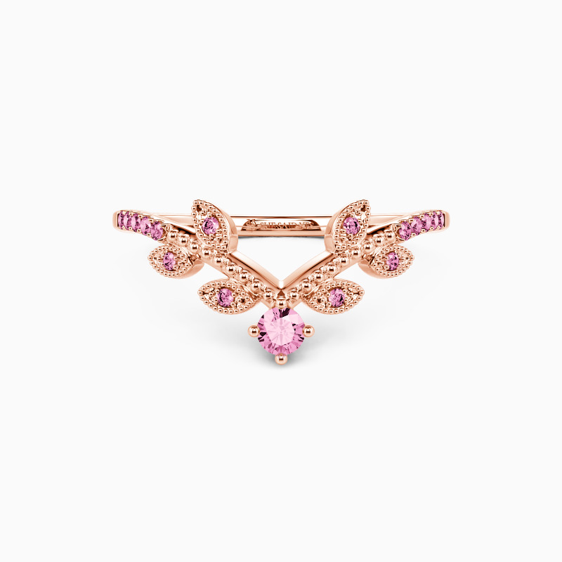 This modern band is a perfect way to add a touch of style and elegance to any ensemble. The leafy design runs along the shank reminding you to enjoy the natural joy in life. It sparkles with the twinkling round-cut stone and intricate milgrain borders. Stack or wear it solo, make a statement with this prominent masterpiece.