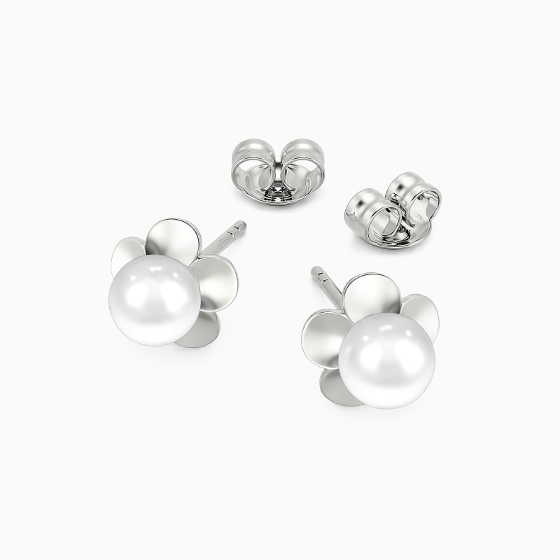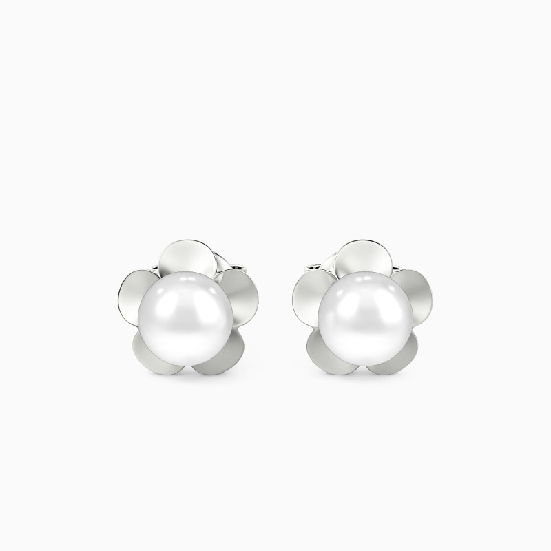 Add a luminous beauty to your look with these earrings. This elegant pair of stud earrings present a stylish combination. Lustrous pearls are set in the center to draw your eyes down, accented with soft ruffled petals of a flower. They create an artistic composition reminiscent of an elegant and lovely look for you.