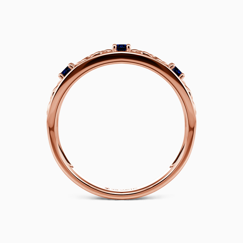This stunning wedding band showcases three-pronged stones encrusted on a half hallow band. The rich-looking motifs add glitz and the stylish charm for the whole ring. Promise your love for a lifetime with this band, and she will come as you expected. Or you can choose to complete a splendid bridal set with it.