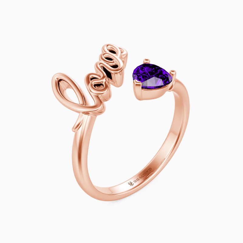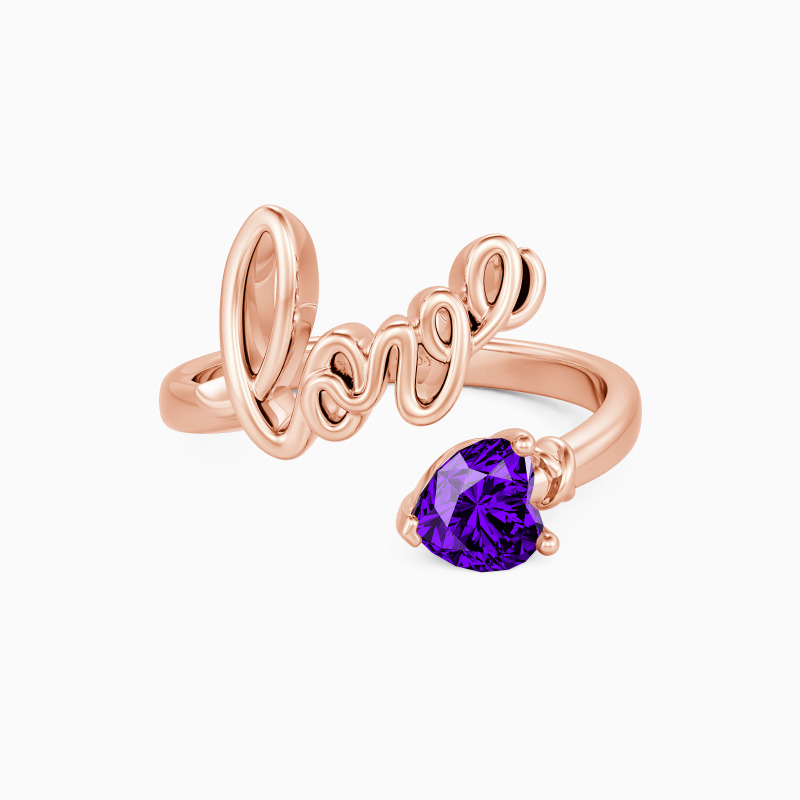 Simple, yet unique. Featuring a hand-writing love at one end and a heart-shaped stone with an arrow towards it. This charming open ring is full of love and details. In love, one and one are one.