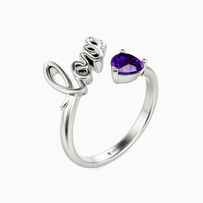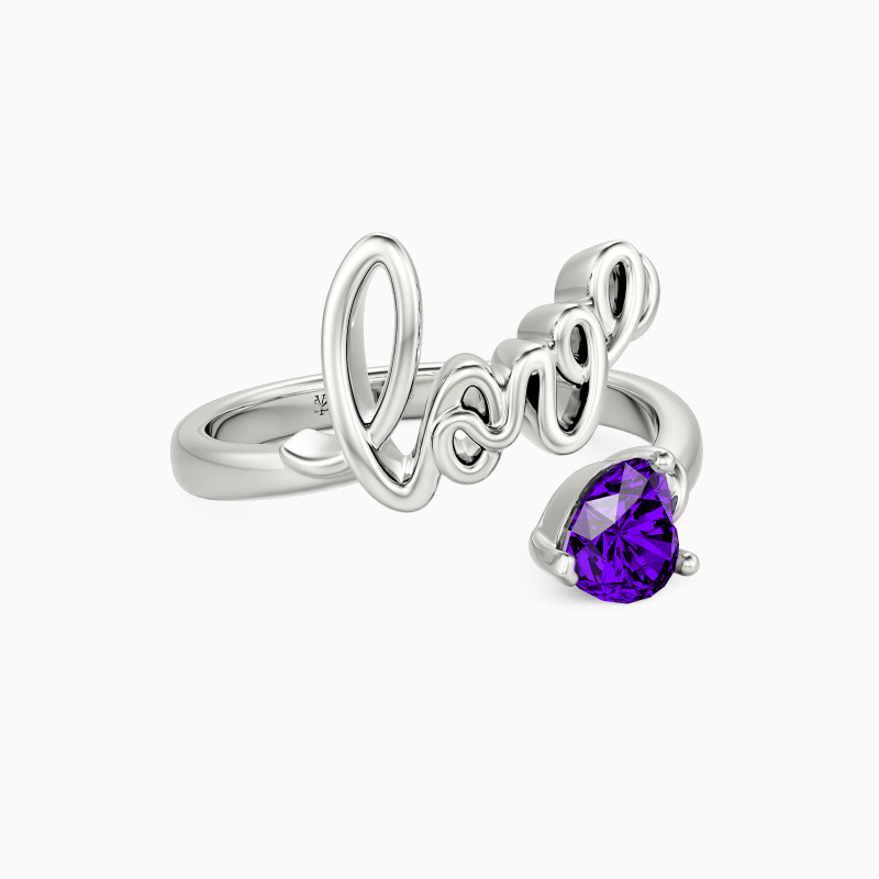 Simple, yet unique. Featuring a hand-writing love at one end and a heart-shaped stone with an arrow towards it. This charming open ring is full of love and details. In love, one and one are one.