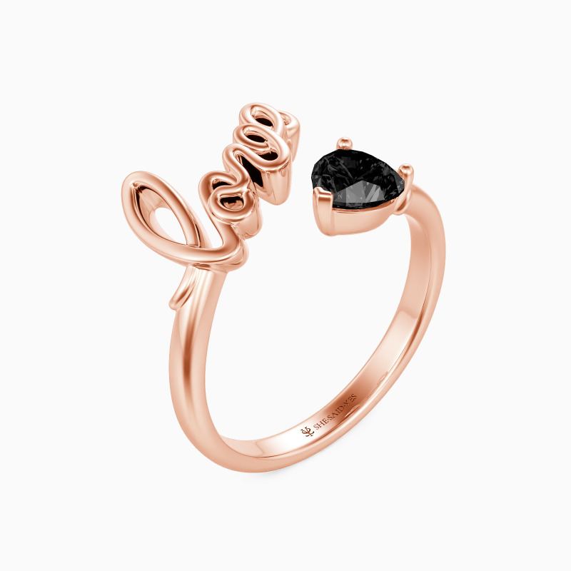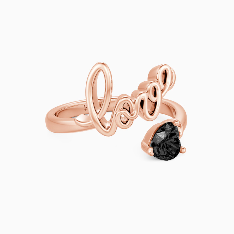 Simple, yet unique. Featuring a hand-writing love at one end and a heart-shaped stone with an arrow towards it. This charming open ring is full of love and details. In love, one and one are one.