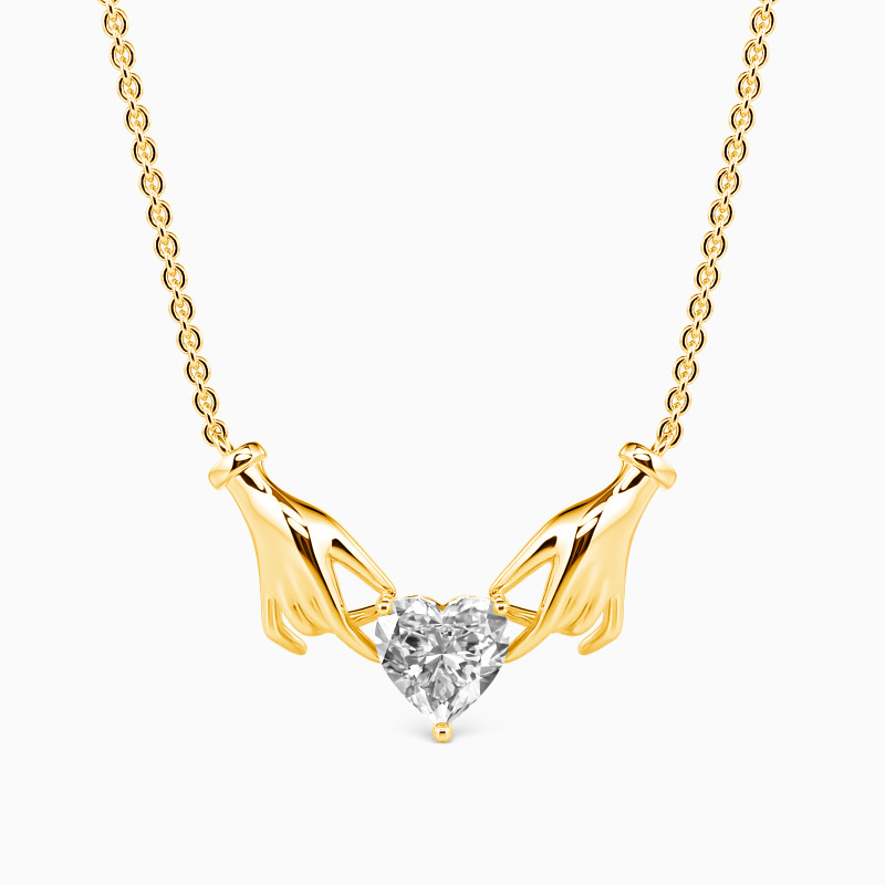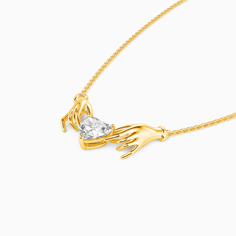 A beautiful and romantic gift to show how much you care for your beloved one, friends or family members. This necklace features a heart hold by pair of fancy hands. The heart symbolizes love, friendship and loyalty. Keep ahead of the trends with this brand new design, and let it witness the sweet time you've been through with them.
