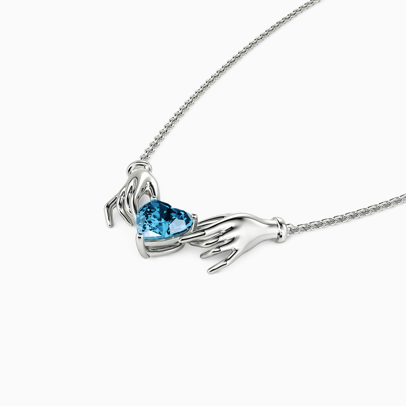 A beautiful and romantic gift to show how much you care for your beloved one, friends or family members. This necklace features a heart hold by pair of fancy hands. The heart symbolizes love, friendship and loyalty. Keep ahead of the trends with this brand new design, and let it witness the sweet time you've been through with them.