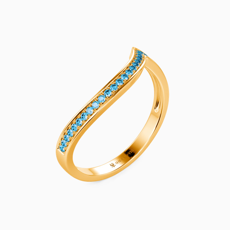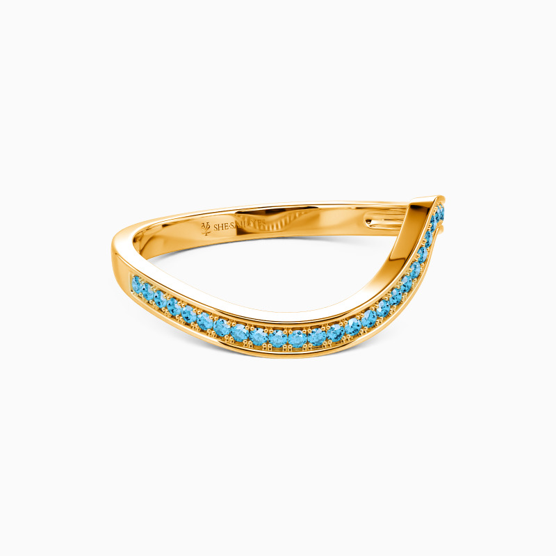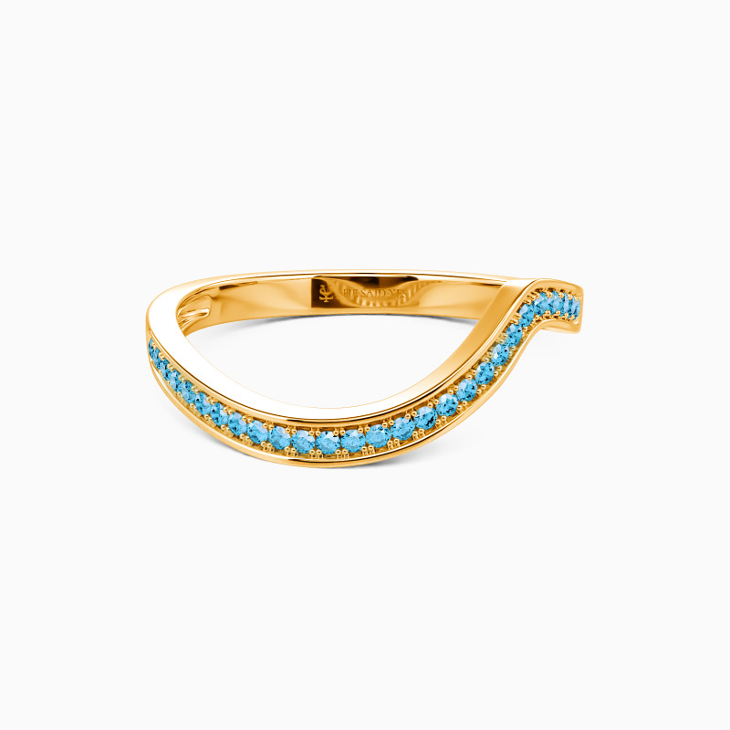 Anything but subtle. The exaggerated curve of this matching wedding band adds the perfect amount of sparkle. Cascading round stones trail down this curved band created to pair nicely with engagement ring styles. It also looks perfect when worn alone.