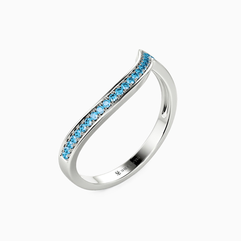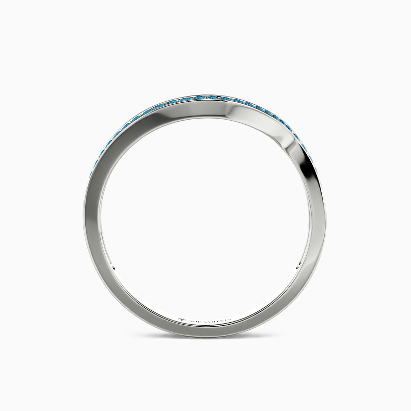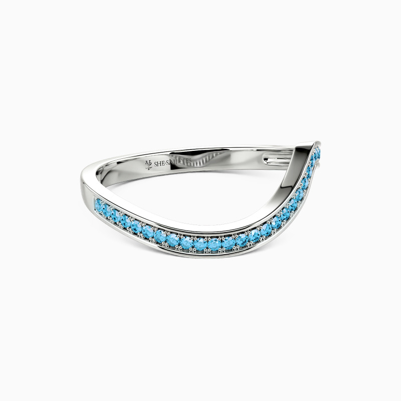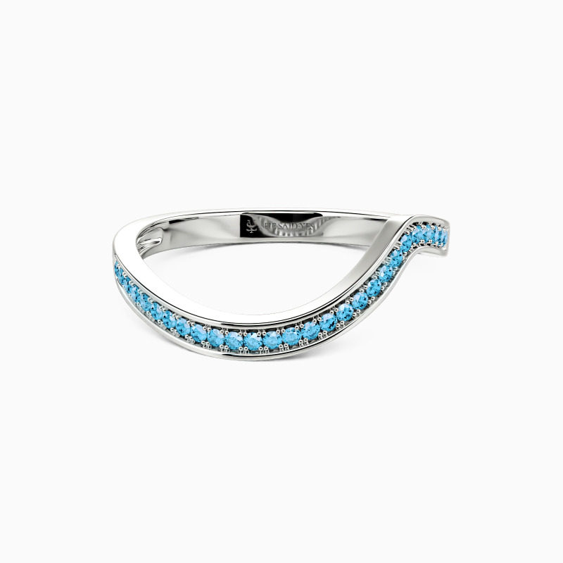 Anything but subtle. The exaggerated curve of this matching wedding band adds the perfect amount of sparkle. Cascading round stones trail down this curved band created to pair nicely with engagement ring styles. It also looks perfect when worn alone.