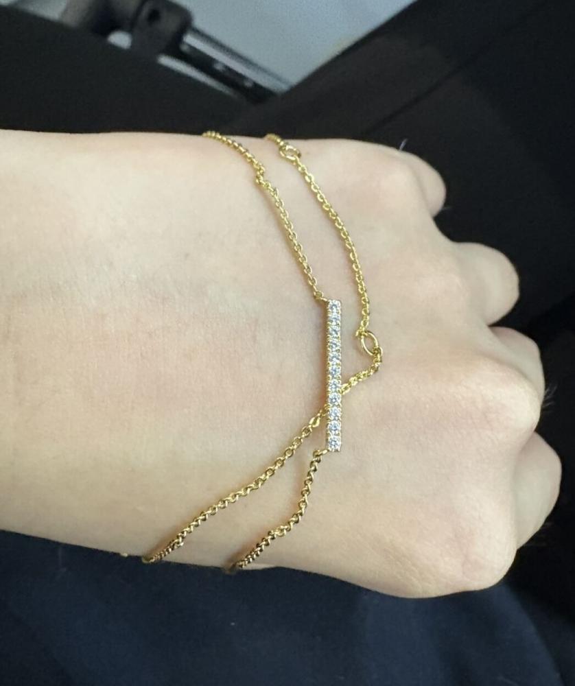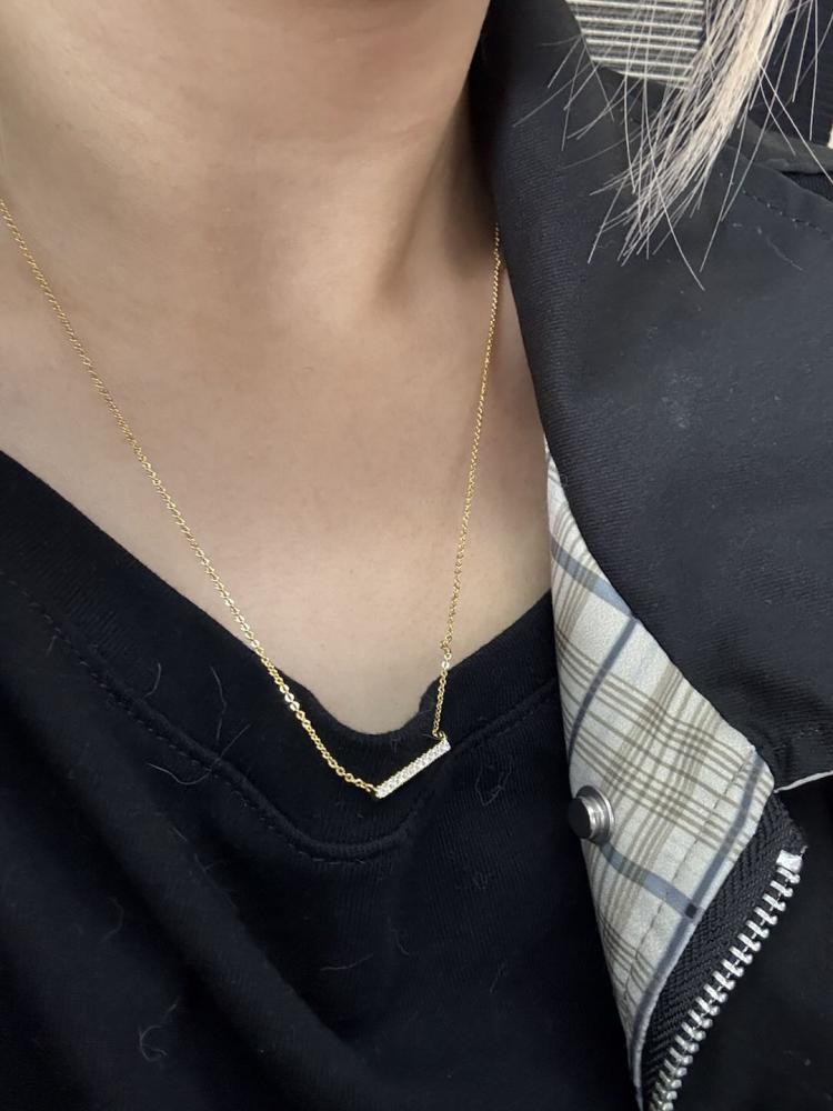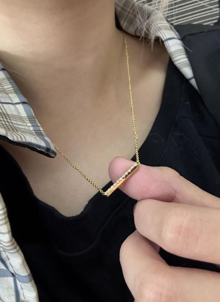 A fine series of glimmering round-cut stones in a pavé setting are displayed along a bar pendant to form this stunning necklace. It is available in your choice of metals and stones. Give it to your beloved one, and love the eternity with your eternal romance.