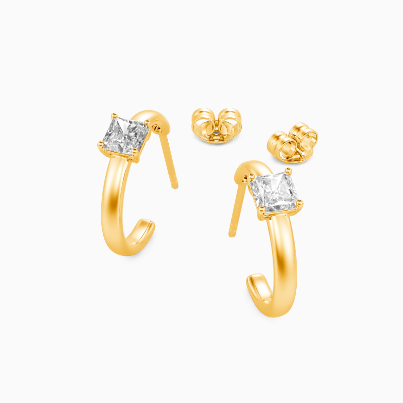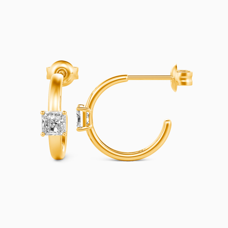 Elegant and sparkling, these hoop earrings relay your affection. Shining asscher cut stones take center stage in these edgy and elevated everyday hoop earrings, lending them a clean and classical look. The simple design makes it perfect on its own or paired with other earrings in a chic stack.