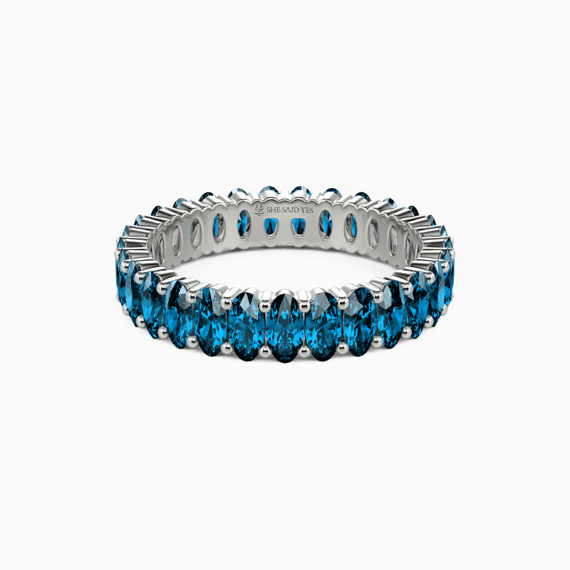 Classic glamour for the elegant bride-to-be. This gracefully adorned wedding band unveils an exemplary sequence of oval-cut accents extending all the way around in a shared prong setting. Pair it with your engagement ring to complete a stunning bridal set. Once your beloved one has seen it, it shows her your inner romantic and forever promise.