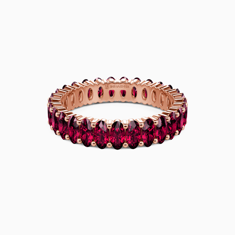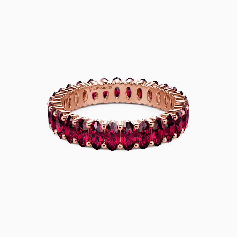 Classic glamour for the elegant bride-to-be. This gracefully adorned wedding band unveils an exemplary sequence of oval-cut accents extending all the way around in a shared prong setting. Pair it with your engagement ring to complete a stunning bridal set. Once your beloved one has seen it, it shows her your inner romantic and forever promise.