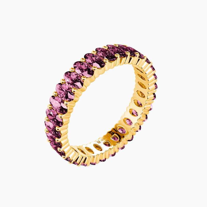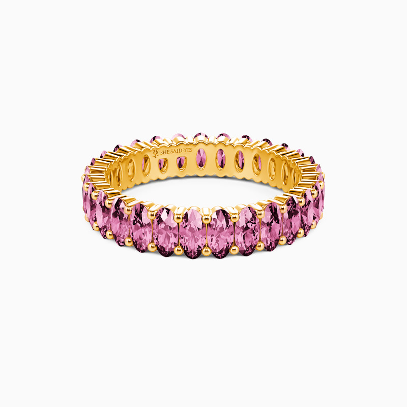 Classic glamour for the elegant bride-to-be. This gracefully adorned wedding band unveils an exemplary sequence of oval-cut accents extending all the way around in a shared prong setting. Pair it with your engagement ring to complete a stunning bridal set. Once your beloved one has seen it, it shows her your inner romantic and forever promise.