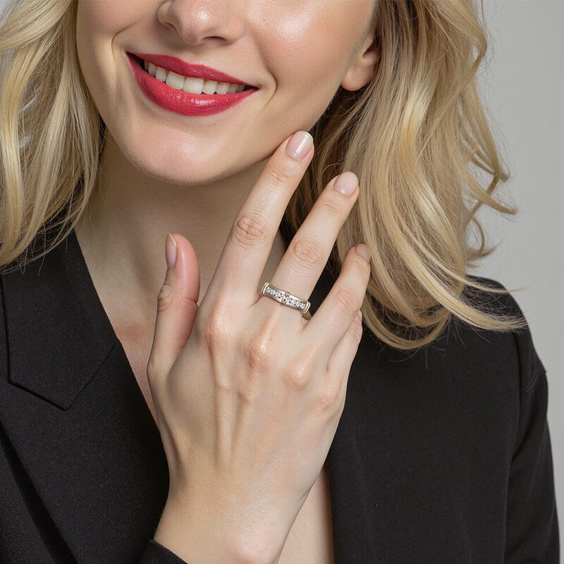 Adorned with various glimmering round stones in a channel set shank, this stylish band is an ideal option for a wedding. It's fashionable in the lustrous precious metal of your choice, and the three knots design provides a modern dimension style. Such an unmissable gift must grab your sight at once.
