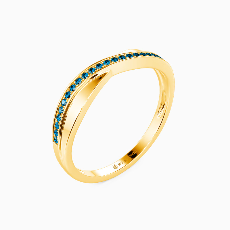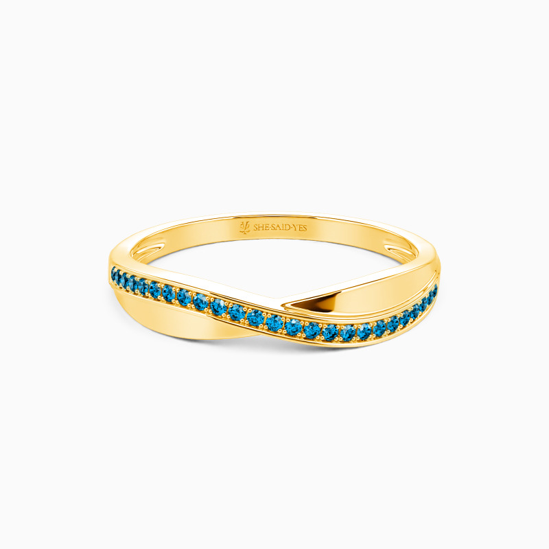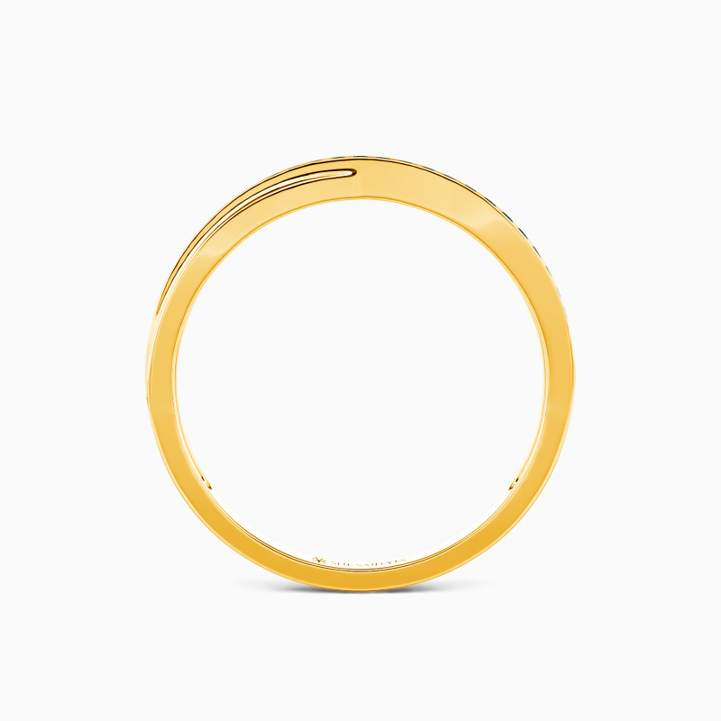 A crossover look gives this classic wedding band a captivating charm. And an exemplary sequence of glistening round-shaped accents stud in a pavé setting evokes gorgeous brilliance. Highly polished metal is designed for a minimalistic look. Pairing it with your engagement ring never goes wrong to show your elegance and beauty.