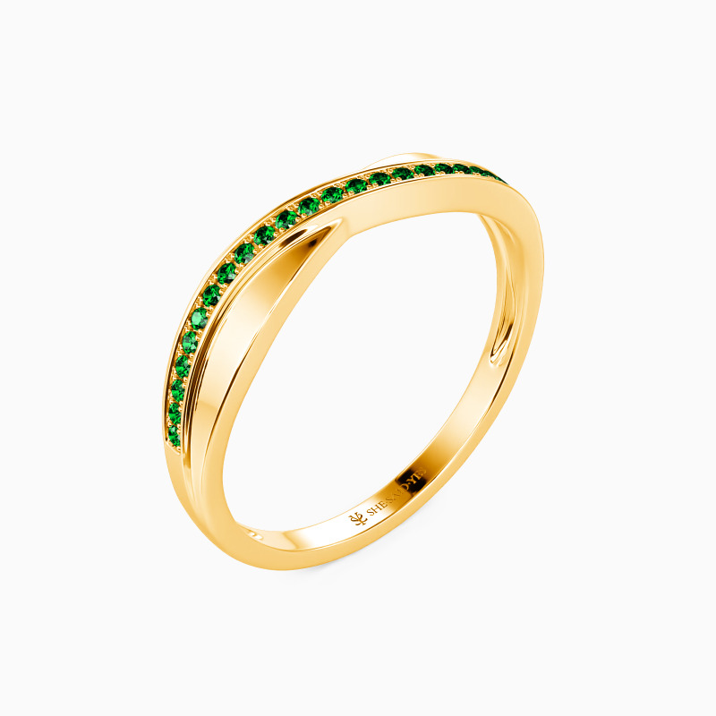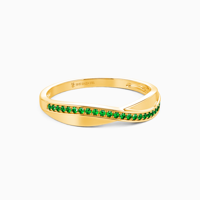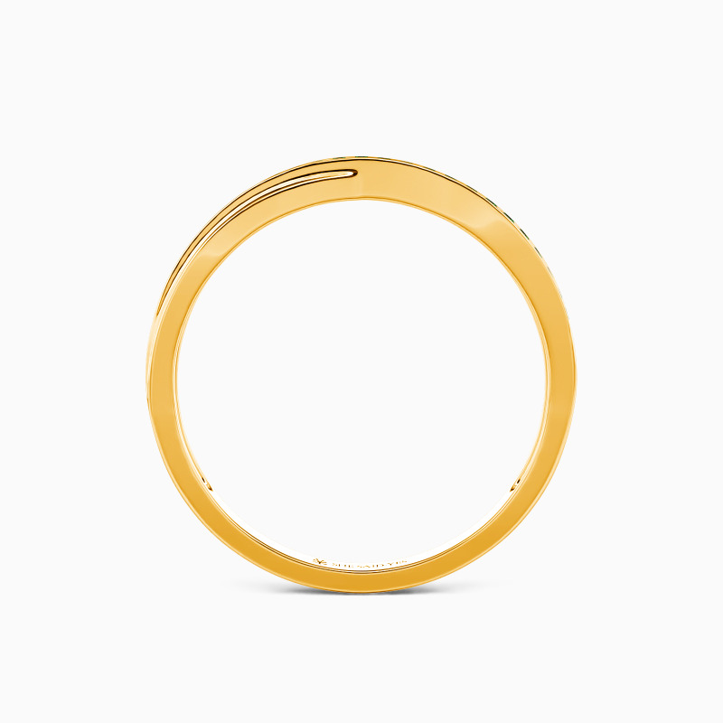 A crossover look gives this classic wedding band a captivating charm. And an exemplary sequence of glistening round-shaped accents stud in a pavé setting evokes gorgeous brilliance. Highly polished metal is designed for a minimalistic look. Pairing it with your engagement ring never goes wrong to show your elegance and beauty.