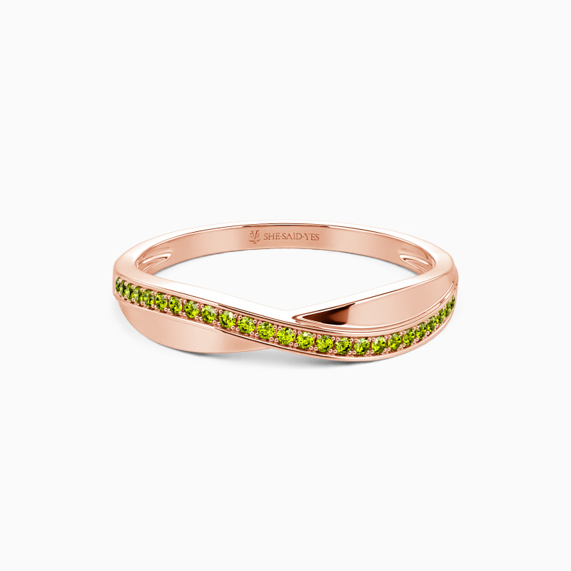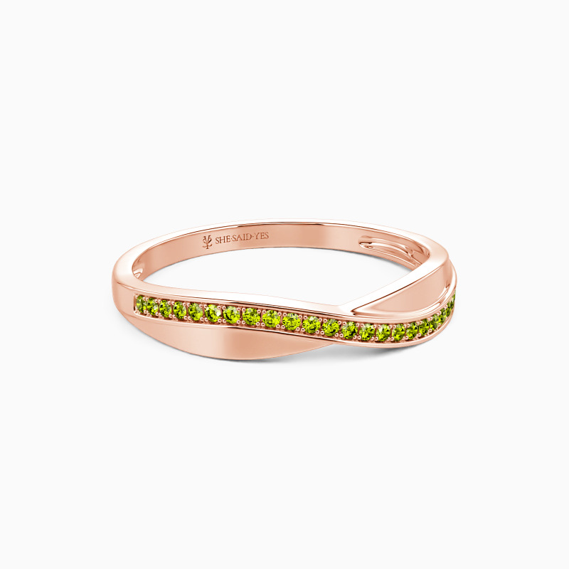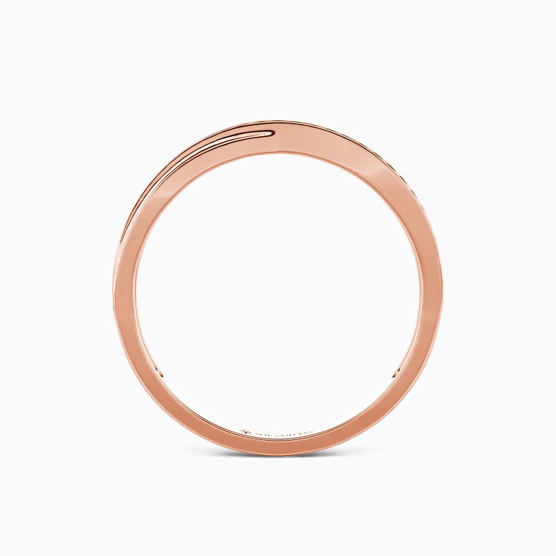 A crossover look gives this classic wedding band a captivating charm. And an exemplary sequence of glistening round-shaped accents stud in a pavé setting evokes gorgeous brilliance. Highly polished metal is designed for a minimalistic look. Pairing it with your engagement ring never goes wrong to show your elegance and beauty.