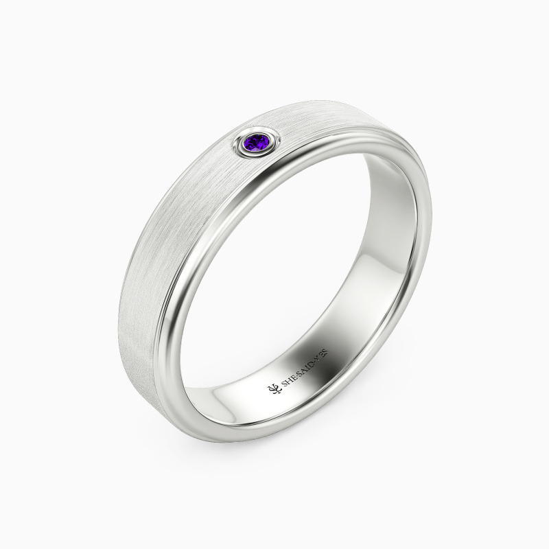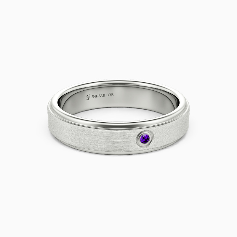 A classic ring with a modern sensibility. The simple shape and contemporary look define its compelling charisma. Featuring a gleaming stone in the center of the satin finish adds a distinctive sense of style from others. Flat edges in an all-around way can bring you all-day wear comfort for the rest of your life.