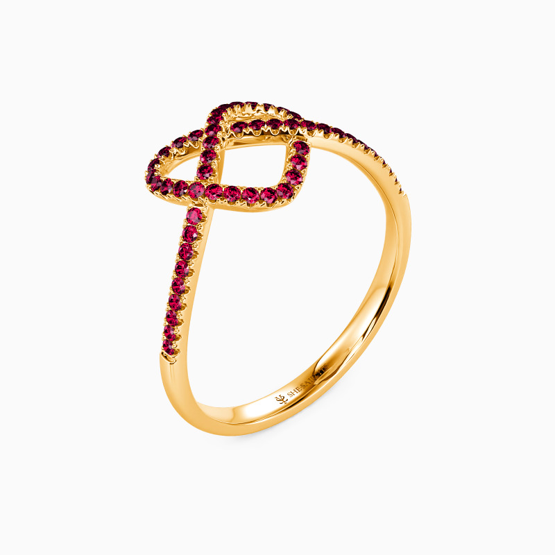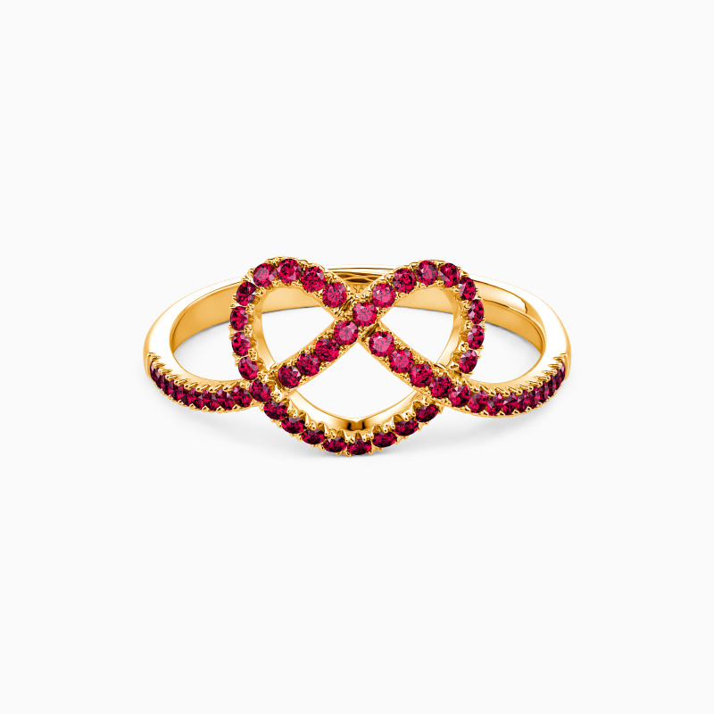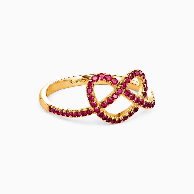 Modern and stylish. The whimsical design of this engagement ring is formed of the unique heart knot paved with various shining stones tidily stretching to the shank, expressing the timeless love and forever commitment for the one you cherished.