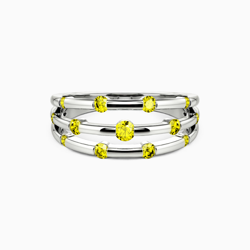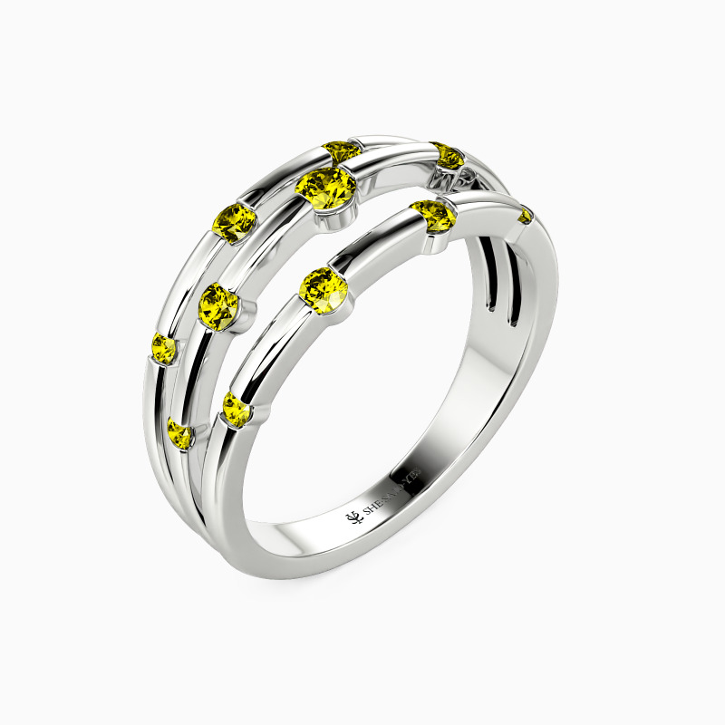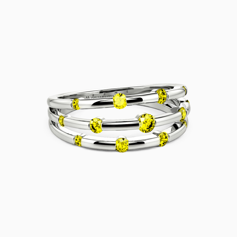 Make your fashion statement with this chic ring. The glittering round-cut stones on the three-row split shank resemble I'm always by your side. They are nestled in a channel setting. I'm a fool for you, and it's you who light up my sky and life!