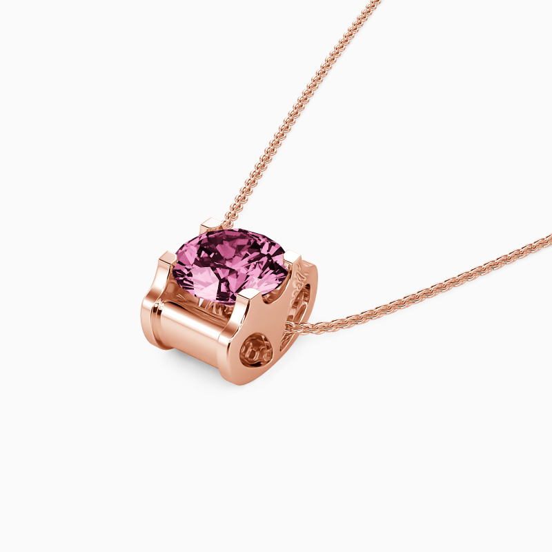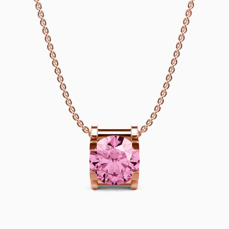 A solitaire round-cut stone is nestled in a channel setting to shine brightly. The charm is suspended between the metallic chain to complete the radiance of this necklace. This simple yet fashionable design will go well with any outfit. Customize the stone you like to show your glamour.