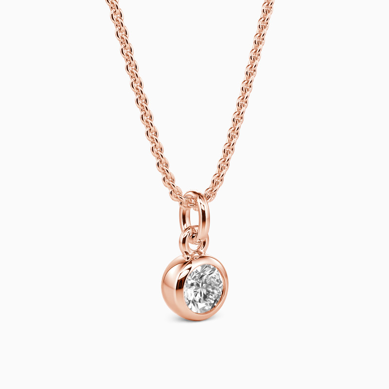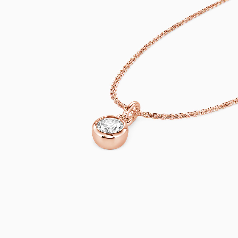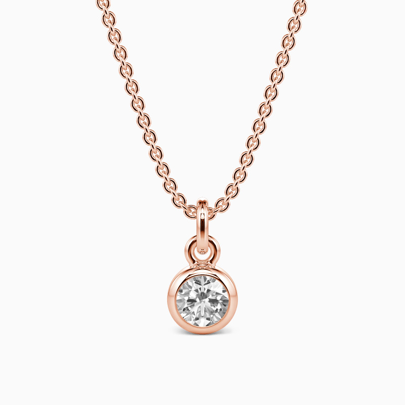 This solitaire necklace features a brilliant round-cut stone set in a highly polished bezel setting, adding dimension to the center stone with a chic appeal. Its timeless design permits it to match any casual or formal attire, and you can customize the stone you prefer.