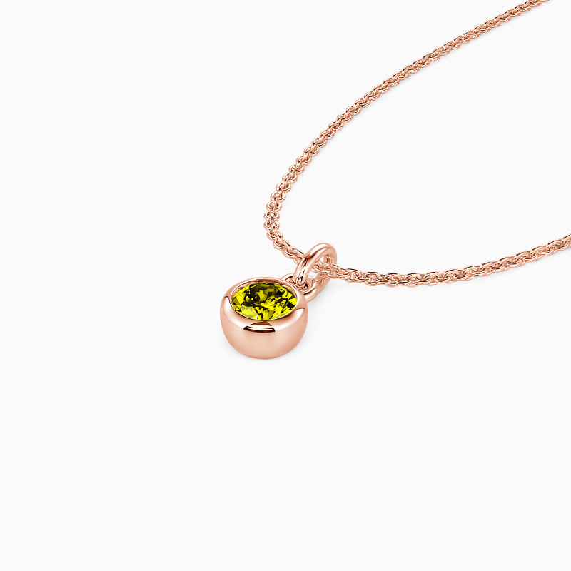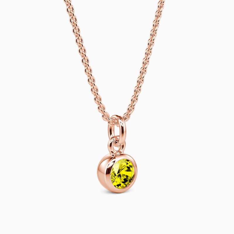 This solitaire necklace features a brilliant round-cut stone set in a highly polished bezel setting, adding dimension to the center stone with a chic appeal. Its timeless design permits it to match any casual or formal attire, and you can customize the stone you prefer.