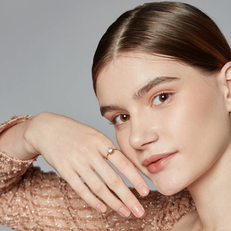 This engagement ring is ideal for the bride-to-be looking for a classic and elegant design. The eight-prong setting allows the center stone to perfectly presenting its round shape and brilliance. Nothing surrounds the center stone, so the ring gleams even more brightly by light from any angle. Custom this ring, and happiness is within reach.