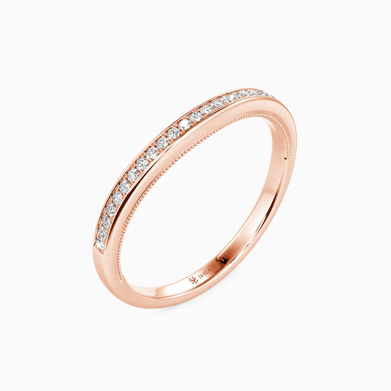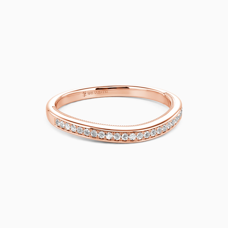 A row of gleaming round-cut stones enhances this timeless classic wedding band. Adorned with delicate milgrain edges and buffed luster, this curved wedding band can be worn individually or complement other rings to match your personal style. Showcase your beauty in this brilliant way to express your love.