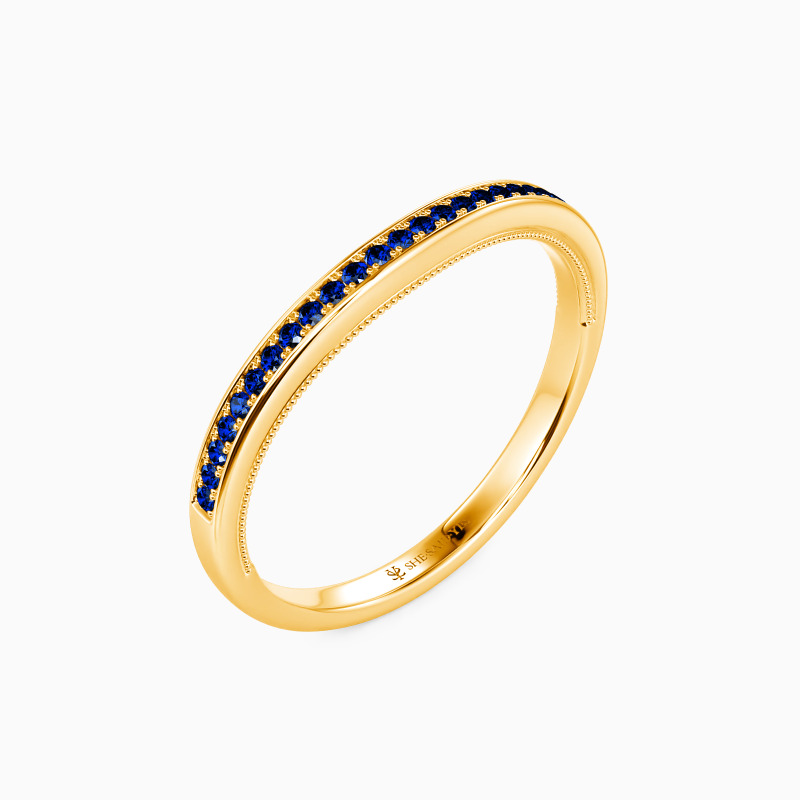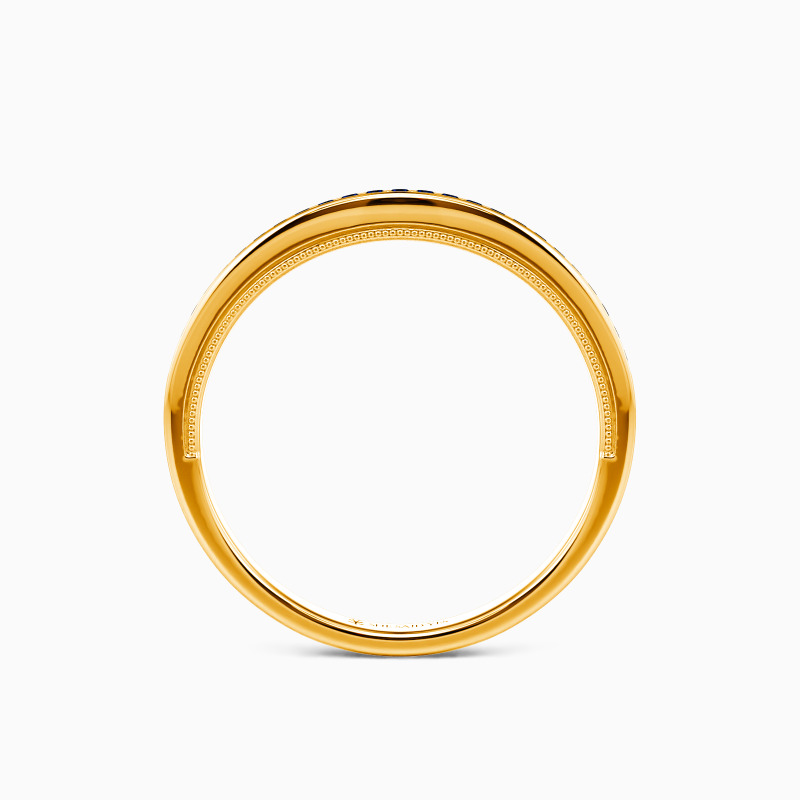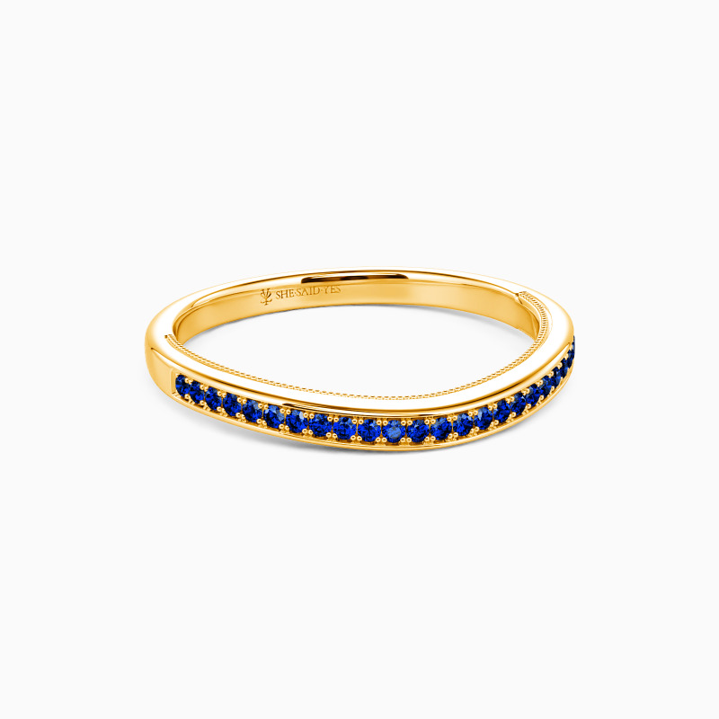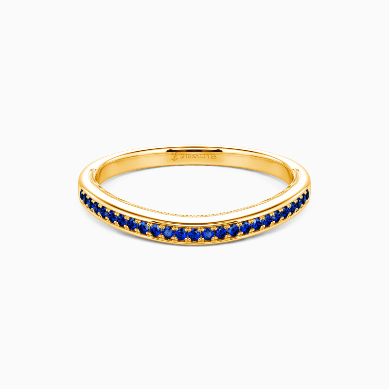 A row of gleaming round-cut stones enhances this timeless classic wedding band. Adorned with delicate milgrain edges and buffed luster, this curved wedding band can be worn individually or complement other rings to match your personal style. Showcase your beauty in this brilliant way to express your love.