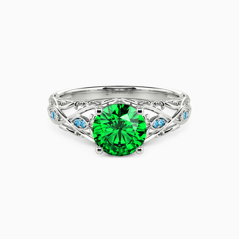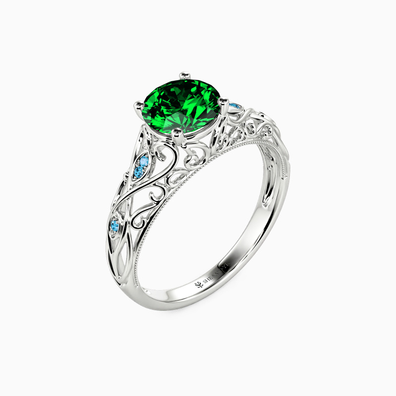 Captivating with the unique natural-inspired design, this engagement ring is a symbol of your beautiful love story. It unveils a brilliant round-cut stone as its center. Delicately sculpted leaves interspersing along the shank, each adorned with sparkling accents. I like the way we feel together. Let the beauty of what we love be sweet forever.