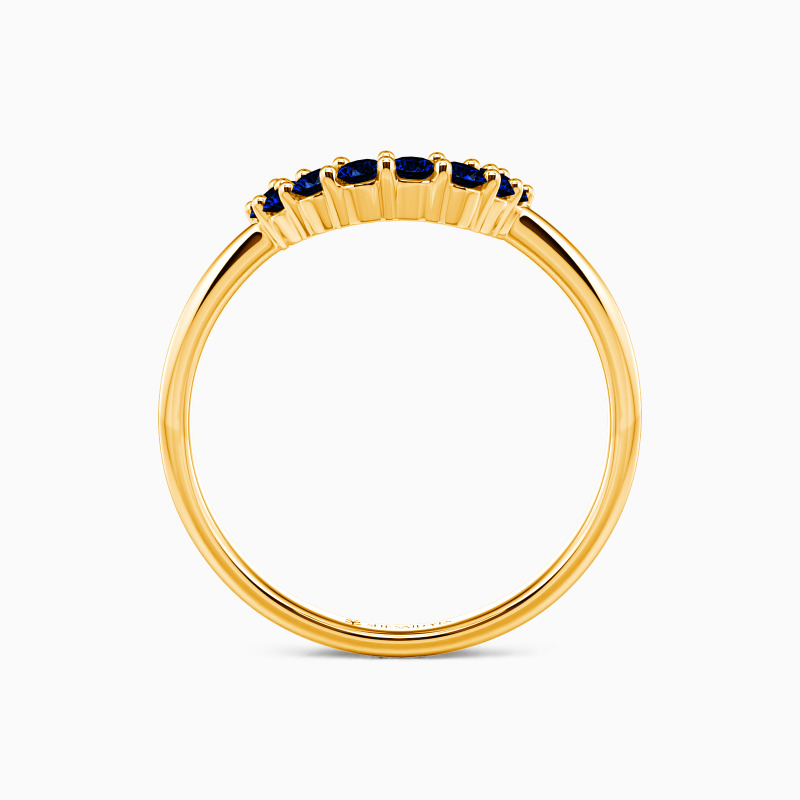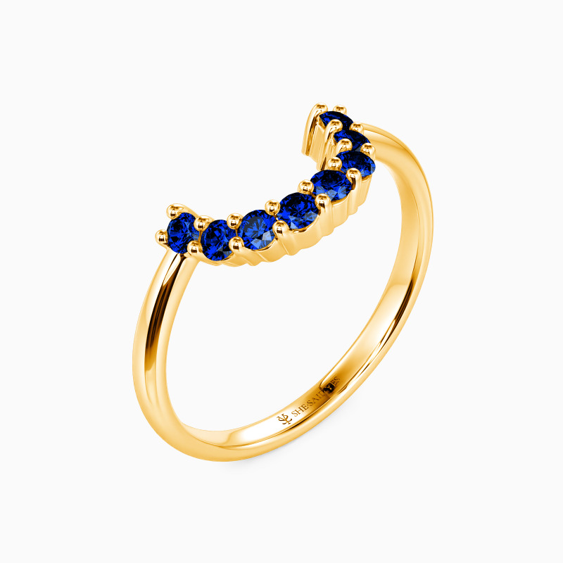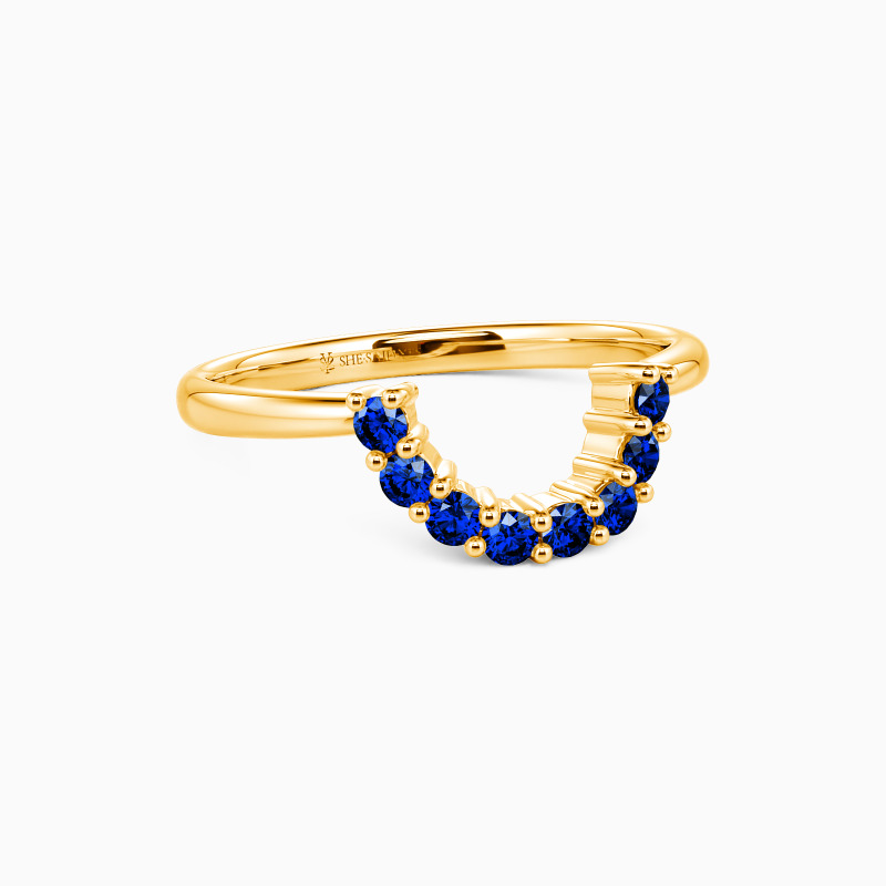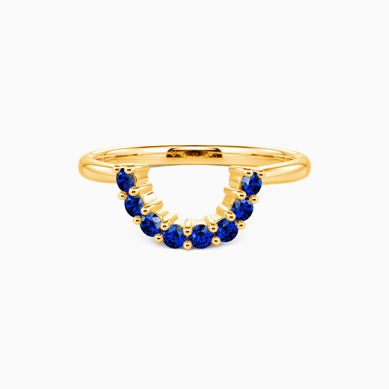The curve of this classic wedding band situates underneath the center stone of the matching engagement ring allowing the band to pair flush against the engagement ring. All accents dance down the lustrous polished band creating a breathtaking sparkle and fire at every angle. You can also stack it with other rings to present a unique set.