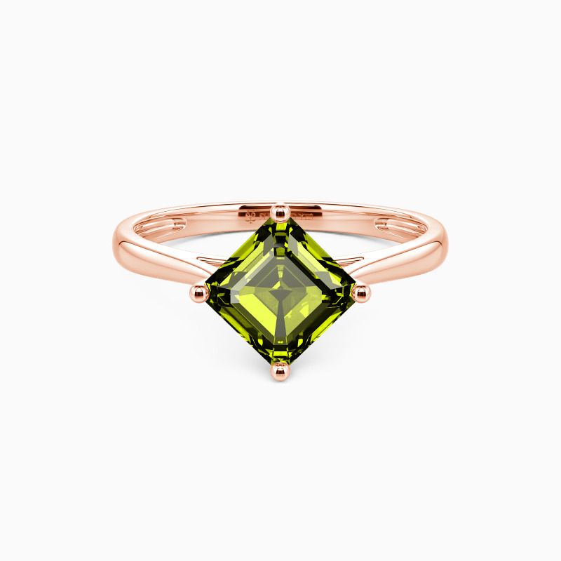 The four-prong setting gives an Asscher-cut stone a classic look and allows more light to contact the stone, enhancing its brilliance. Give this ring to your beloved one to promise to be with her forever.