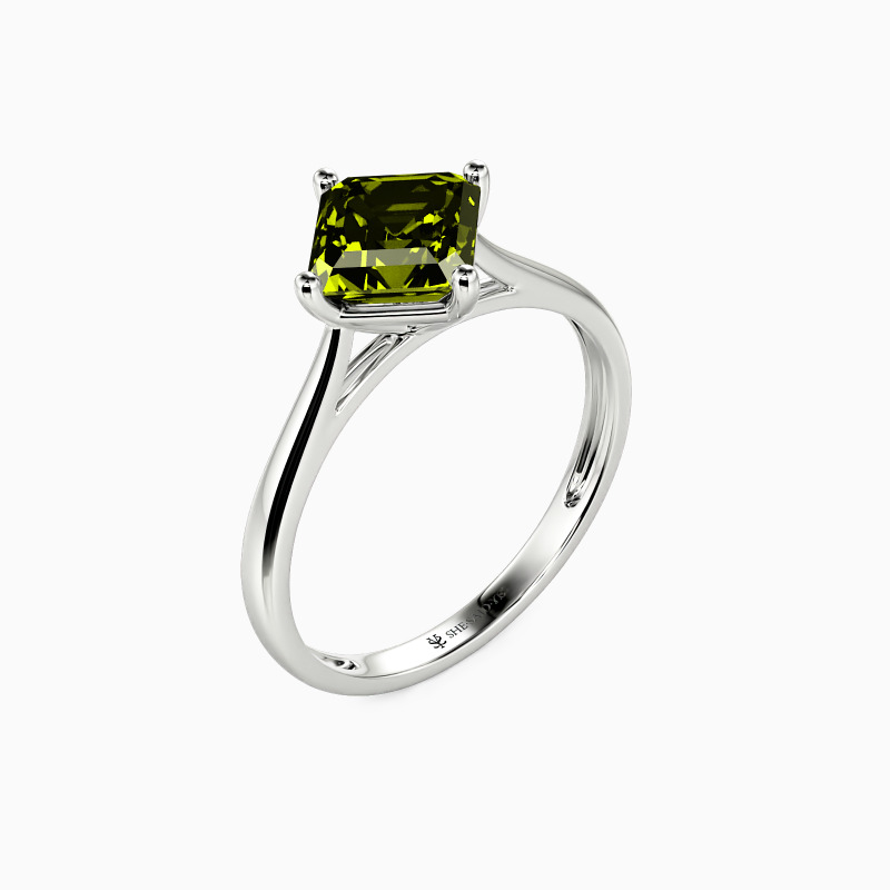 The four-prong setting gives an Asscher-cut stone a classic look and allows more light to contact the stone, enhancing its brilliance. Give this ring to your beloved one to promise to be with her forever.