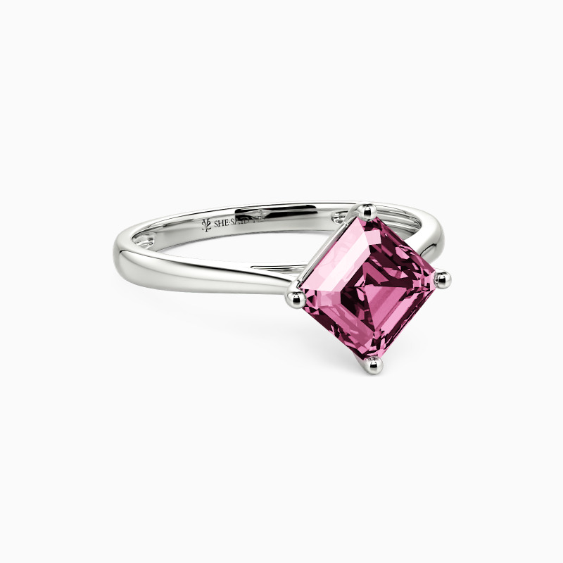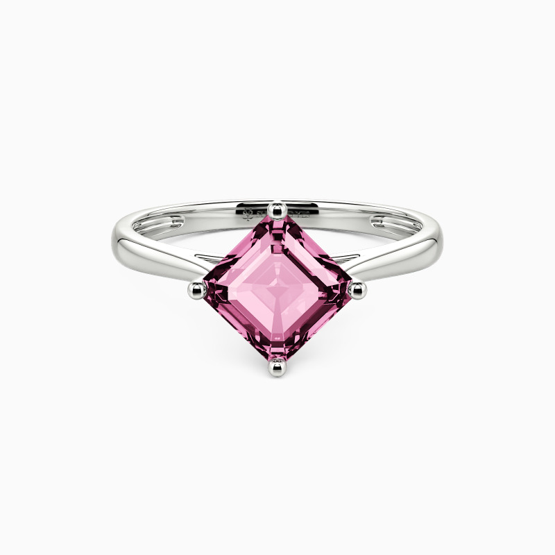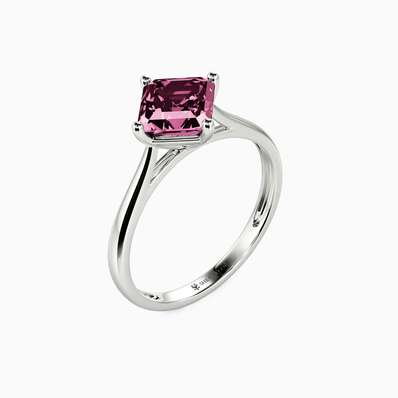 The four-prong setting gives an Asscher-cut stone a classic look and allows more light to contact the stone, enhancing its brilliance. Give this ring to your beloved one to promise to be with her forever.