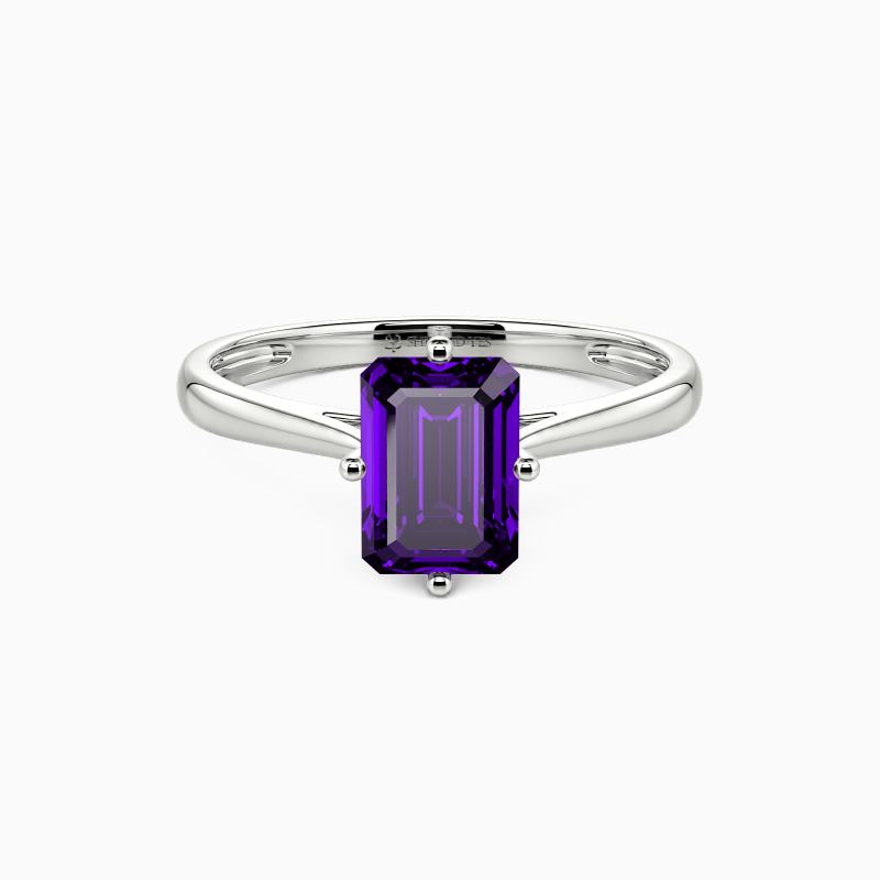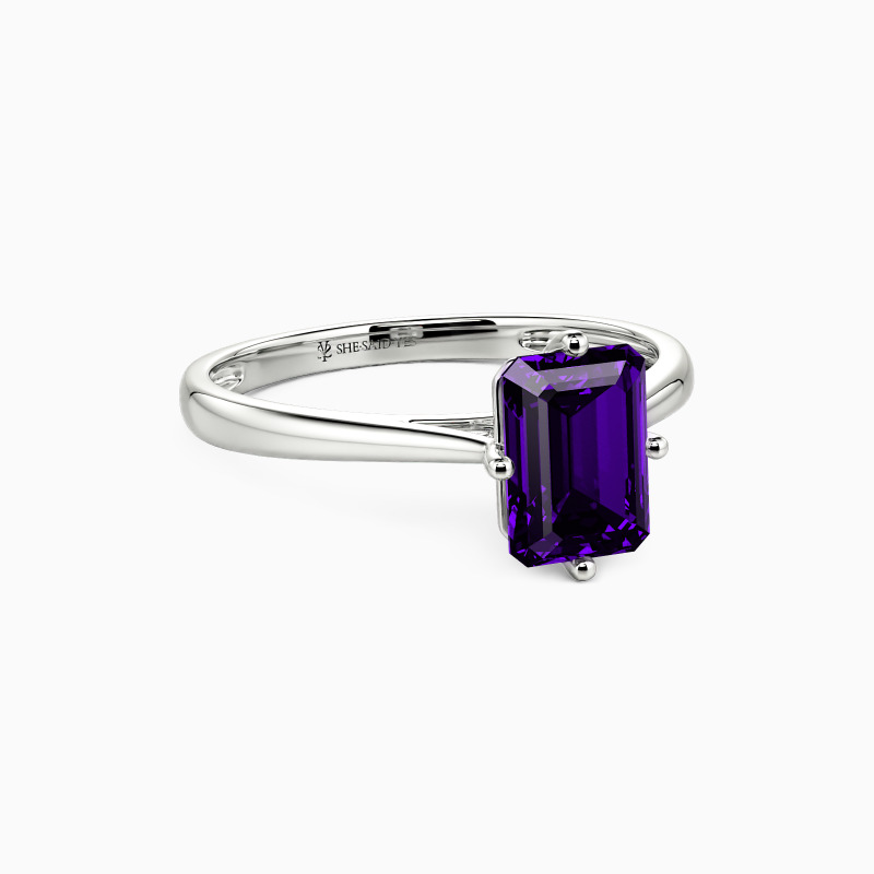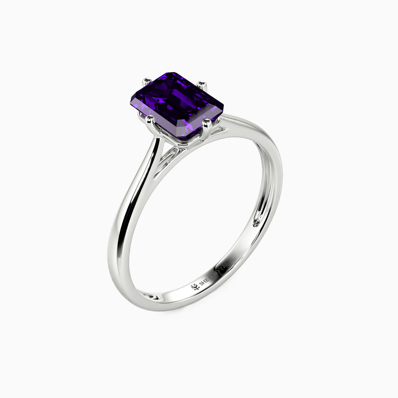 The four-prong setting gives an emerald-cut stone a classic look and allows more light to contact the stone, enhancing its brilliance. Give this ring to your beloved one to promise to be with her forever.