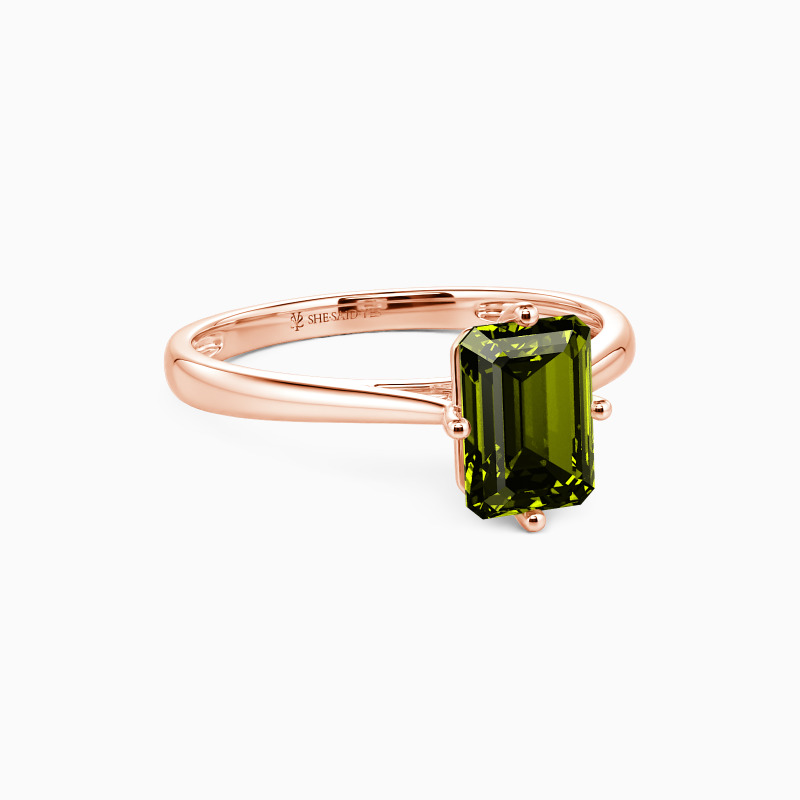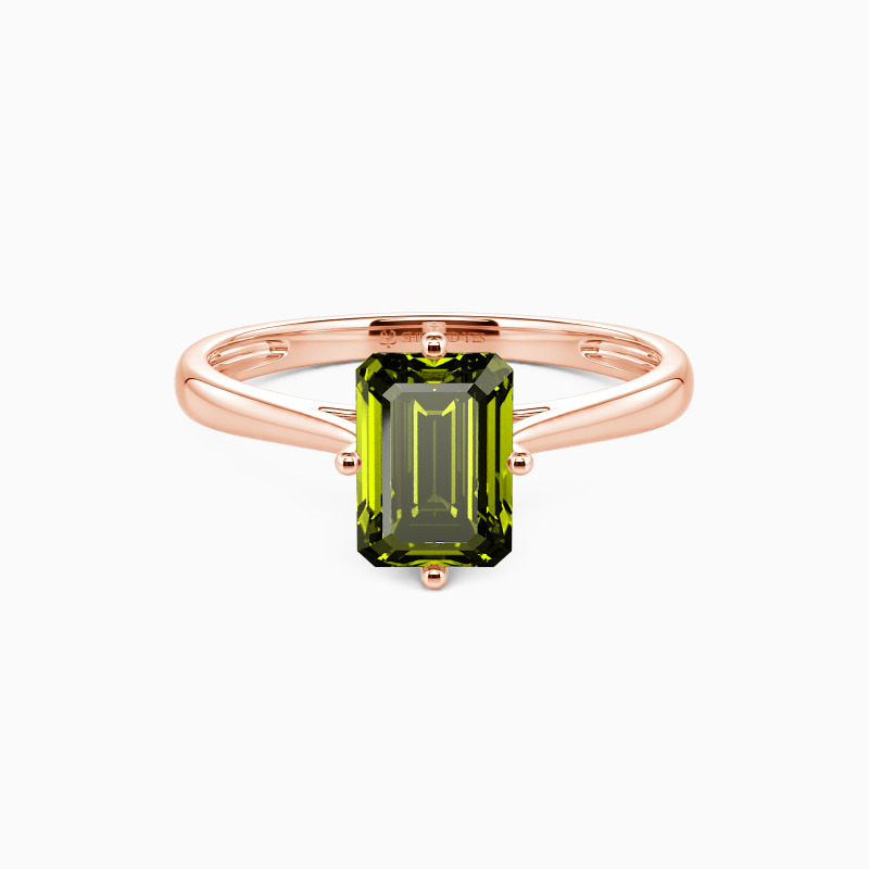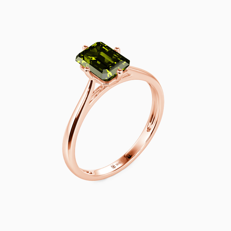The four-prong setting gives an emerald-cut stone a classic look and allows more light to contact the stone, enhancing its brilliance. Give this ring to your beloved one to promise to be with her forever.