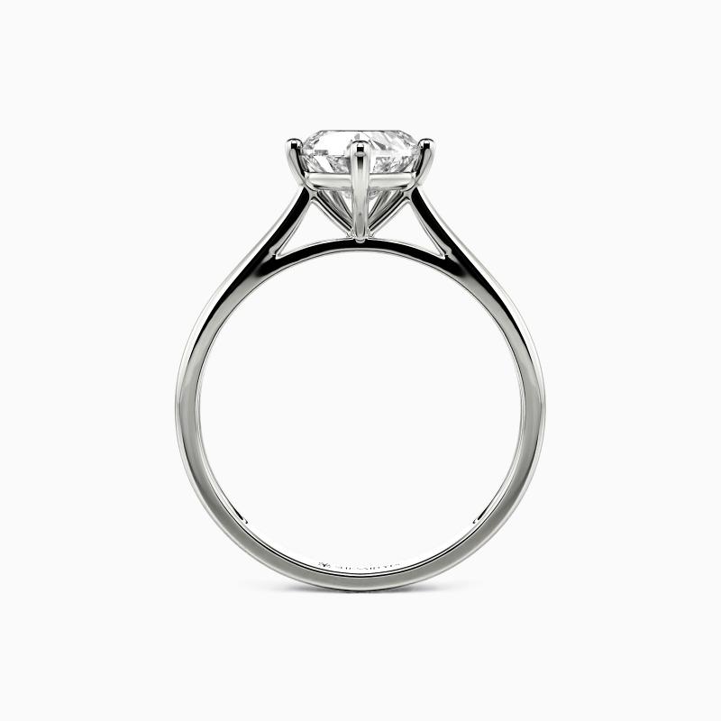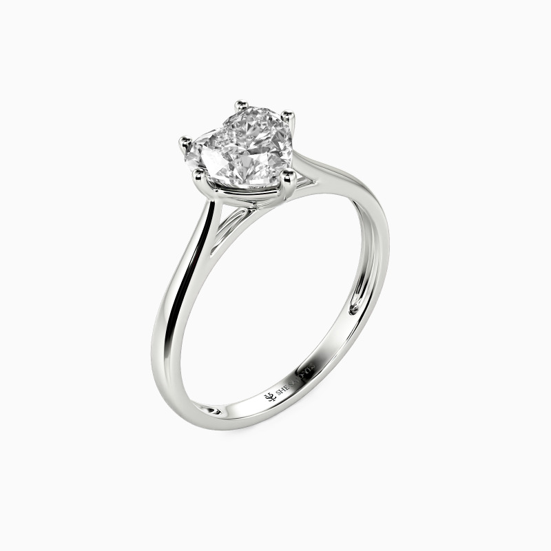 The setting gives a heart-cut stone a classic look and allows more light to contact the stone, enhancing its brilliance. Give this ring to your beloved one to promise to be with her forever.