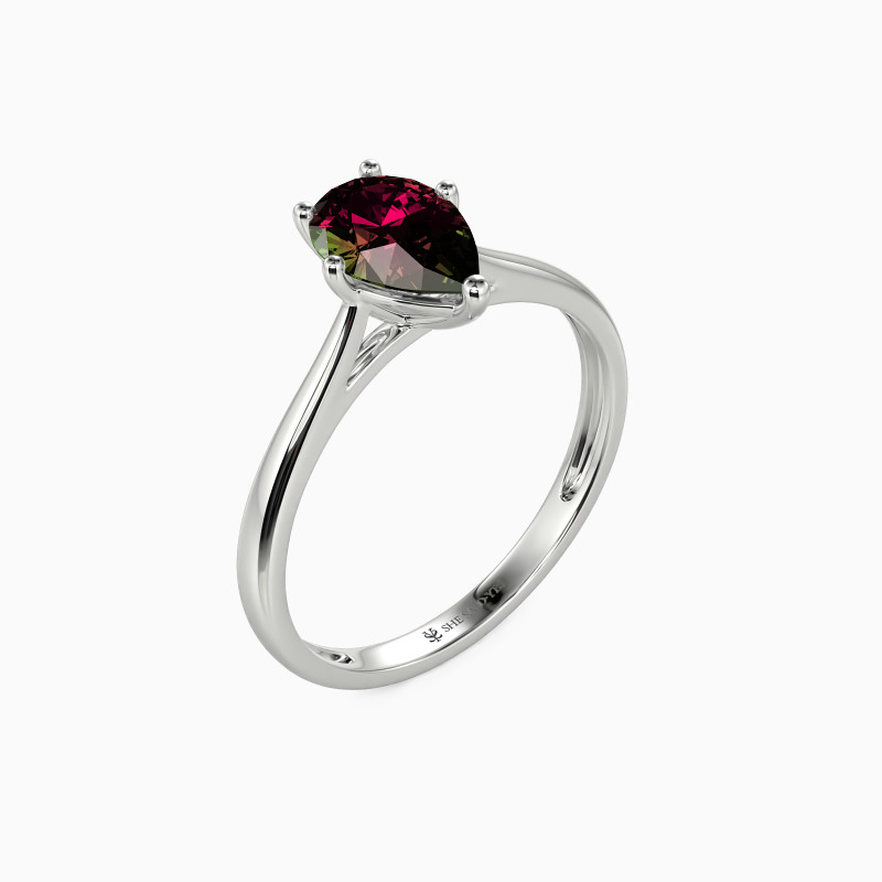The setting gives a pear-cut stone a classic look and allows more light to contact the stone, enhancing its brilliance. Give this ring to your beloved one to promise to be with her forever.