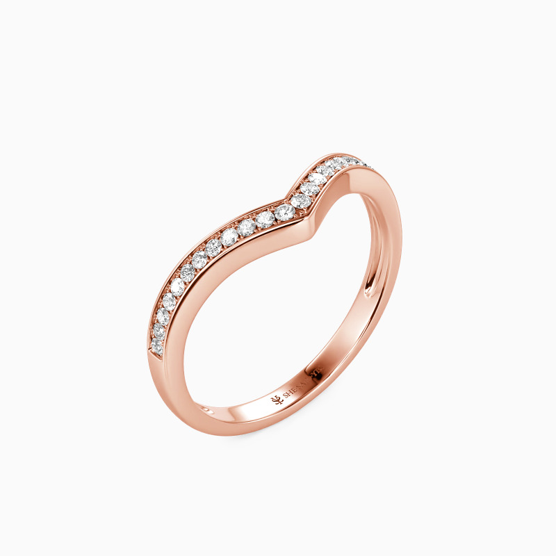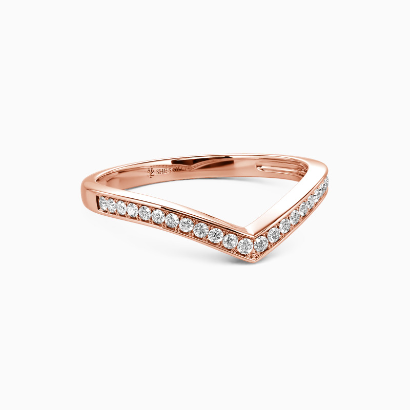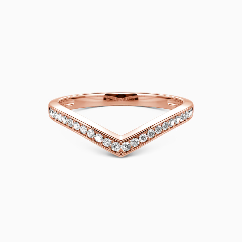 Enchants you with the stylish charm. This classic wedding band features a set of scintillating round-cut accents in a pavé setting on the V-shaped shank. Complement this marvelous piece with an engagement ring or wear it alone for a fancy impression.
