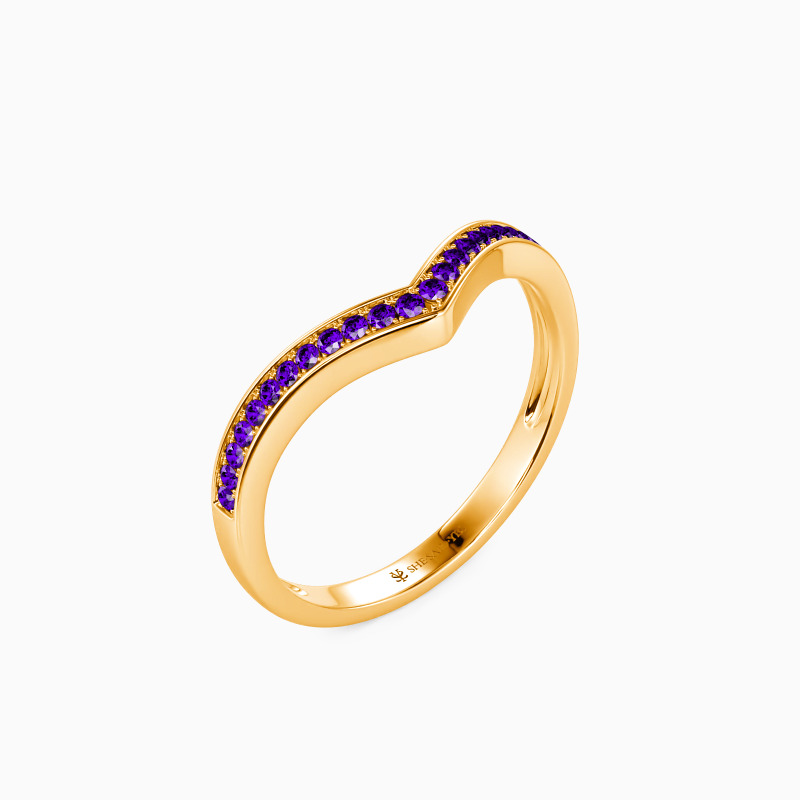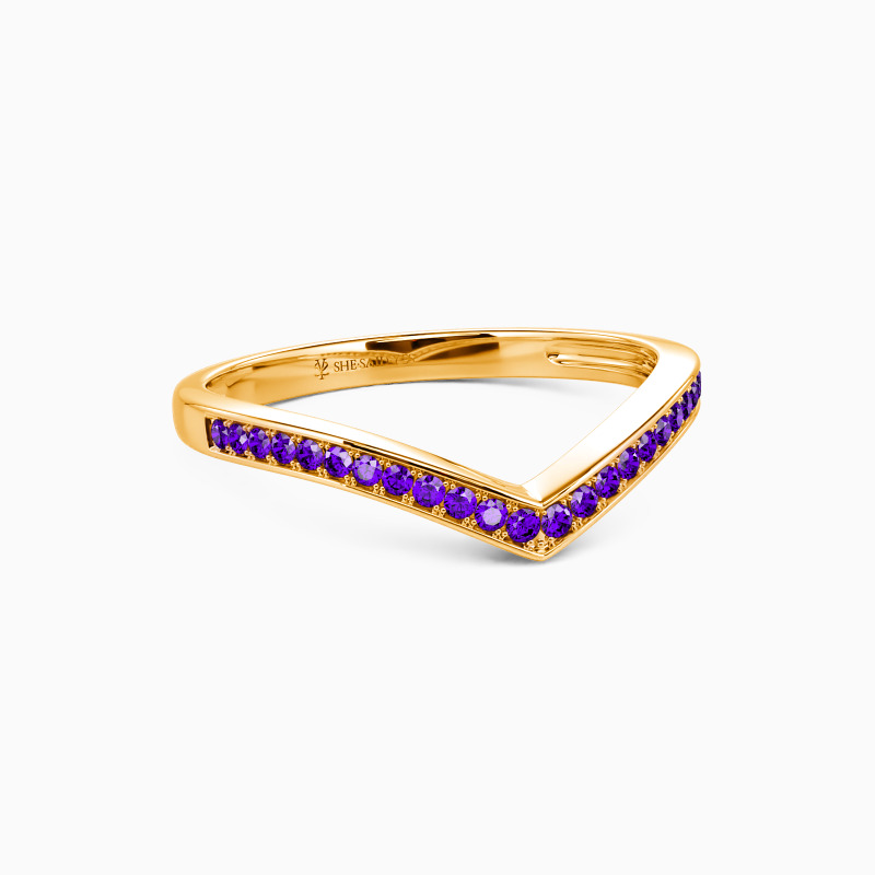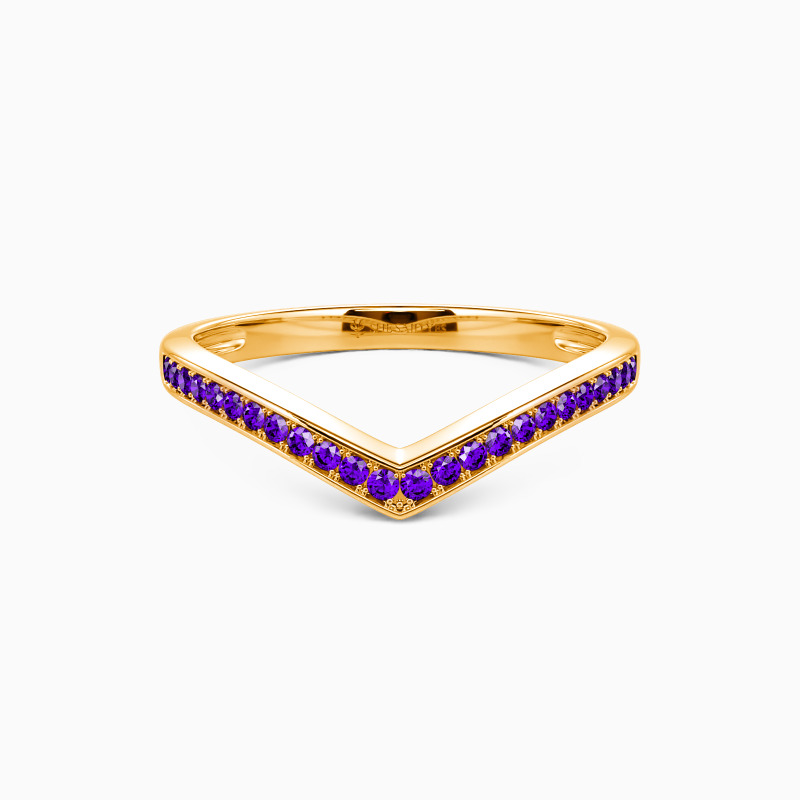 Enchants you with the stylish charm. This classic wedding band features a set of scintillating round-cut accents in a pavé setting on the V-shaped shank. Complement this marvelous piece with an engagement ring or wear it alone for a fancy impression.