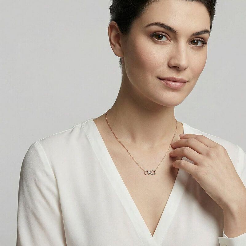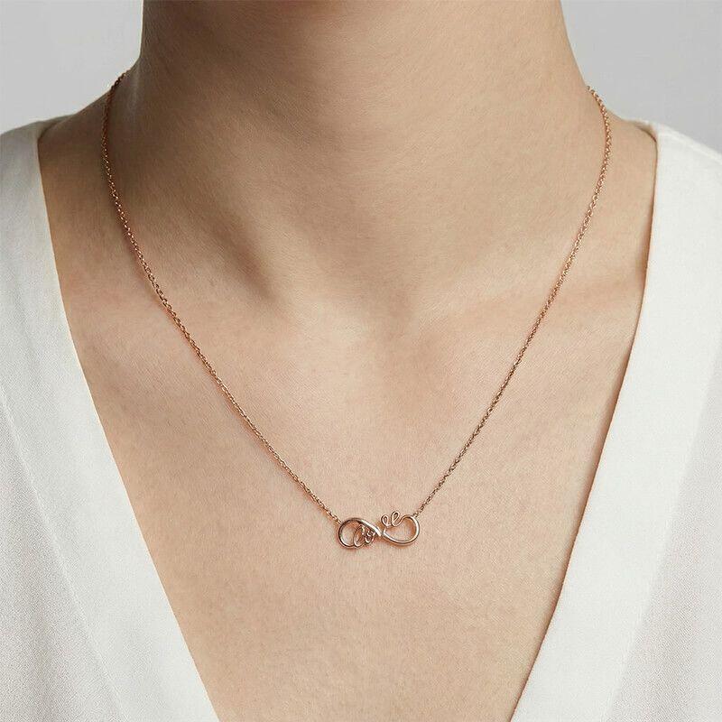 Featuring the word love that forms the central line of the infinity symbol, this necklace symbolizes the endless love that flows in the river of life. The profound connotation behind its dainty frame is, dress up your good day. Whether you prefer gold or rose gold, you'll fall in love with this simply timeless and symbolic accessory.