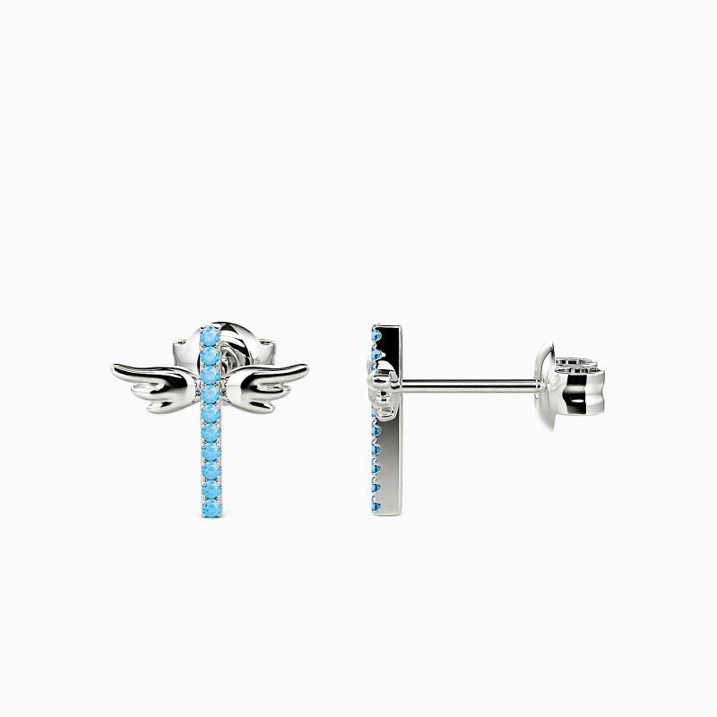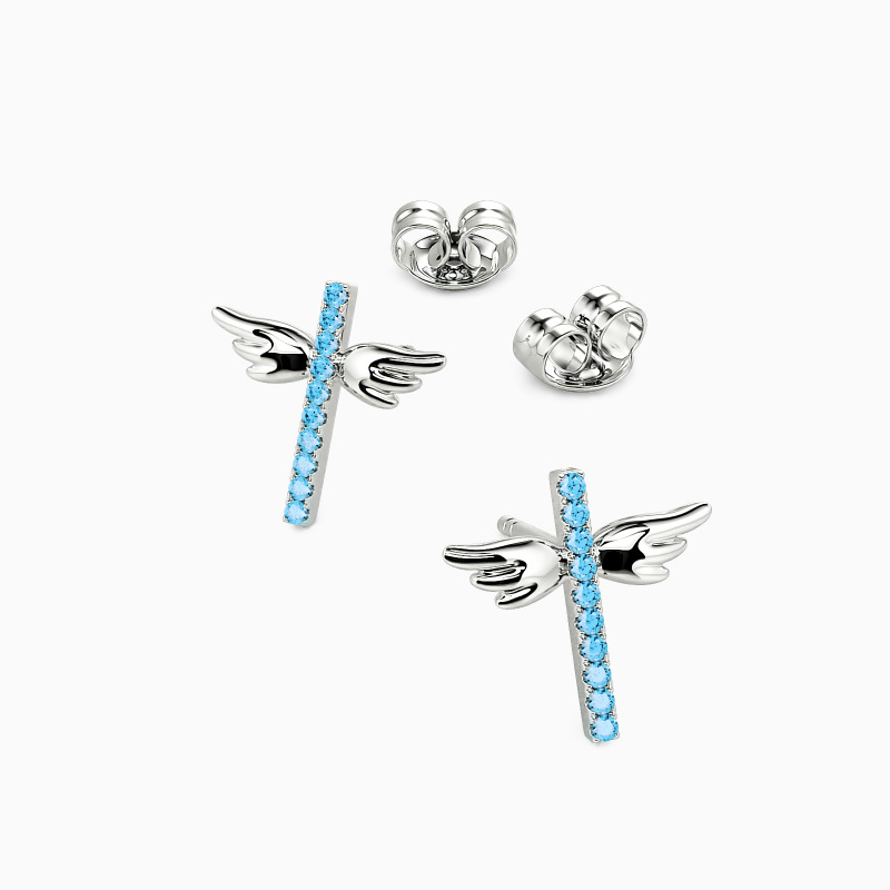 Elevate any look with some shimmering glow while wearing this pair of stud earrings with a row of brilliant accents. Perfect for religious occasions. Featuring a universal symbol of faith, these cross design earrings are special for their wings, she will be so beautiful in these precious crosses. Also a meaningful gift for babies and kids.