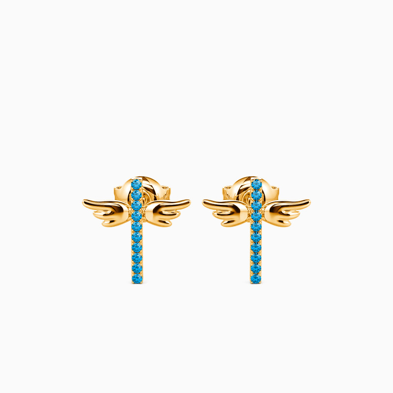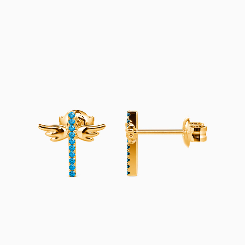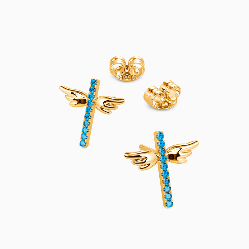 Elevate any look with some shimmering glow while wearing this pair of stud earrings with a row of brilliant accents. Perfect for religious occasions. Featuring a universal symbol of faith, these cross design earrings are special for their wings, she will be so beautiful in these precious crosses. Also a meaningful gift for babies and kids.