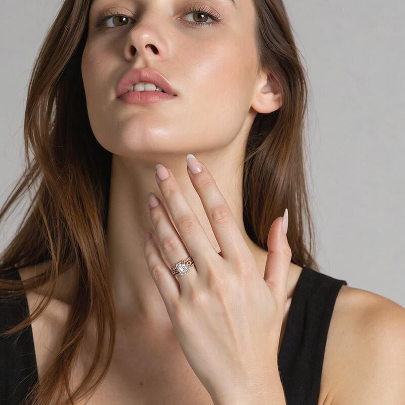 "Kiss on Cheeks" Radiant Cut Bridal Set