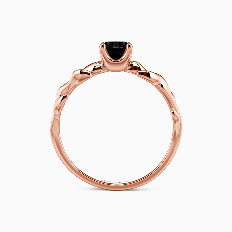 Nature-inspired for the chic bride-to-be. This solitaire engagement ring unveils a glistening round-cut stone studded in four prongs to shine at every angle. And leaf motifs on the polished shank further complement the center stone and overall look. So pop the question to her, and this ring will shine with your wonderful life together.